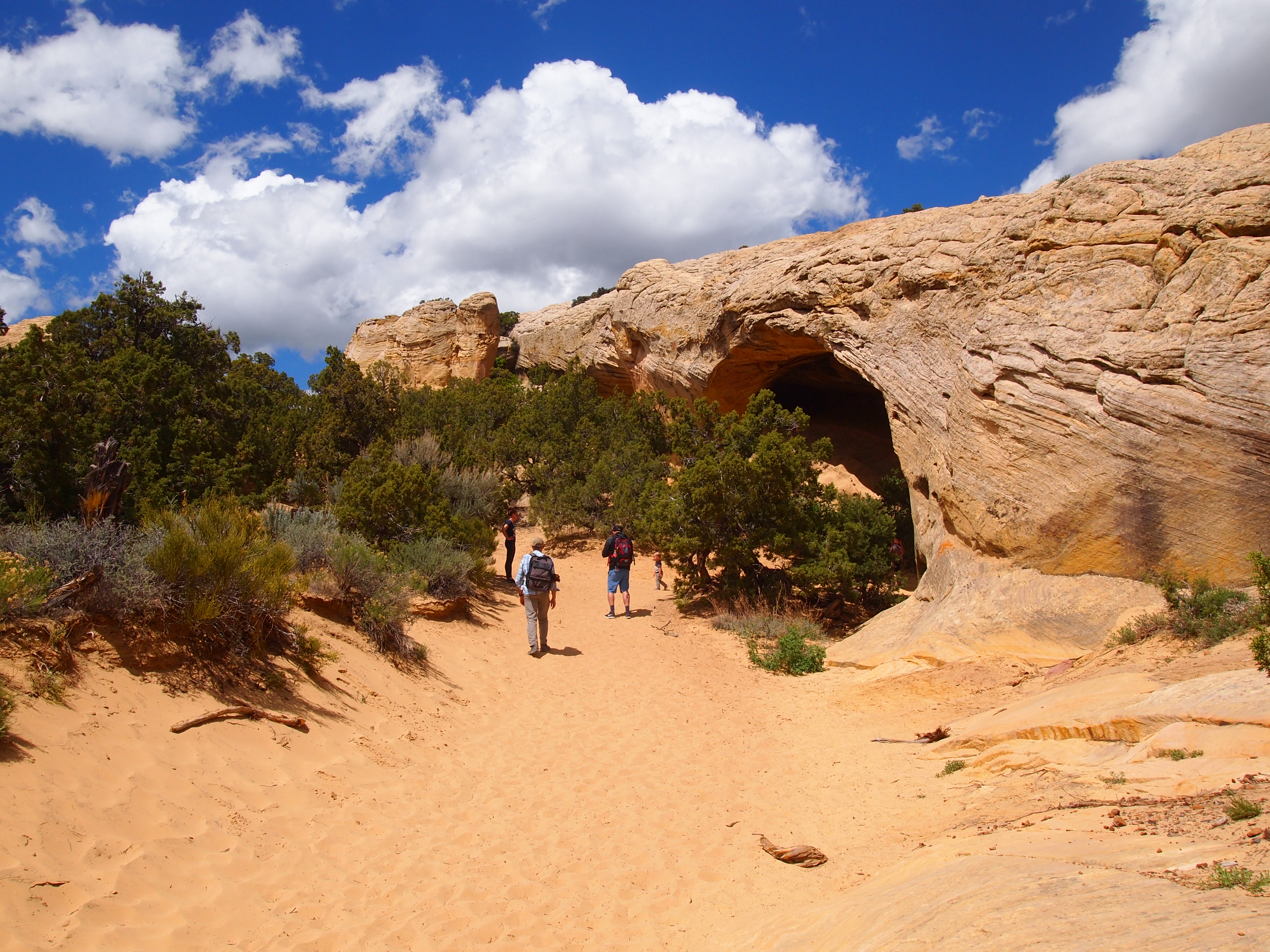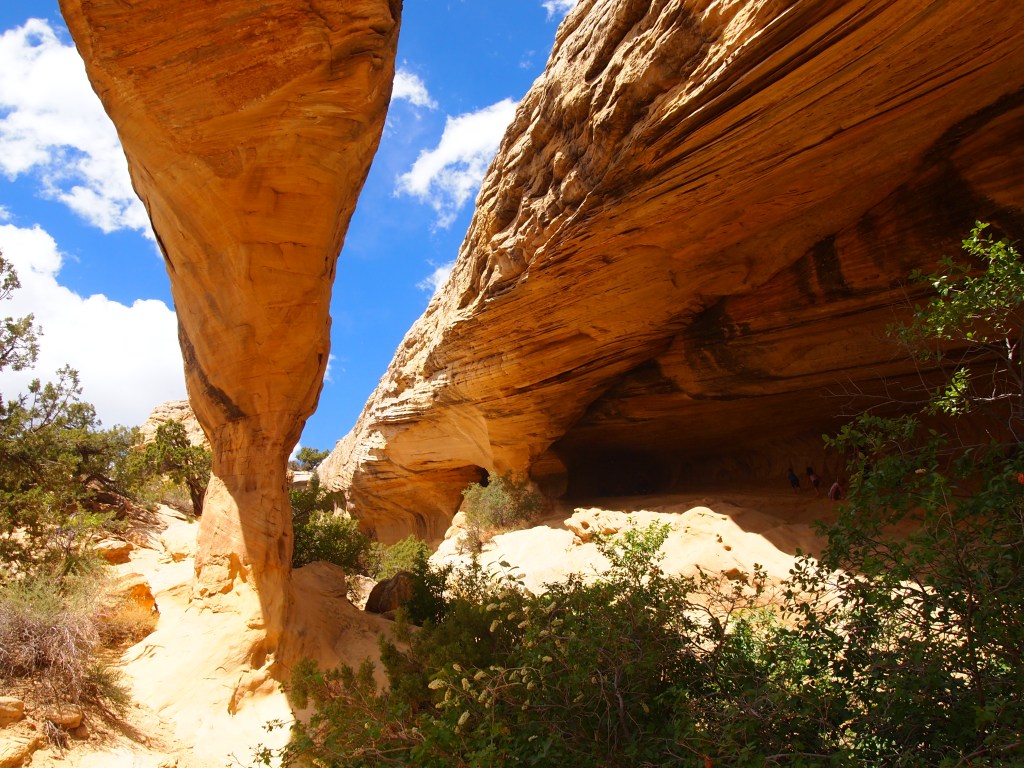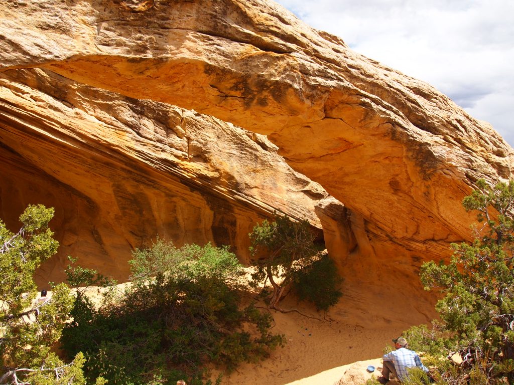 It wasn’t long before we reached the arch. An alcove behind the arch offers some shade from the otherwise direct sunlight, but we refrained from climbing in as it was already occupied. Instead we found a shaded spot under a scraggly juniper tree. Even though there were several families out, it didn’t feel crowded. But it certainly would have been more peaceful if we’d had it to ourselves.