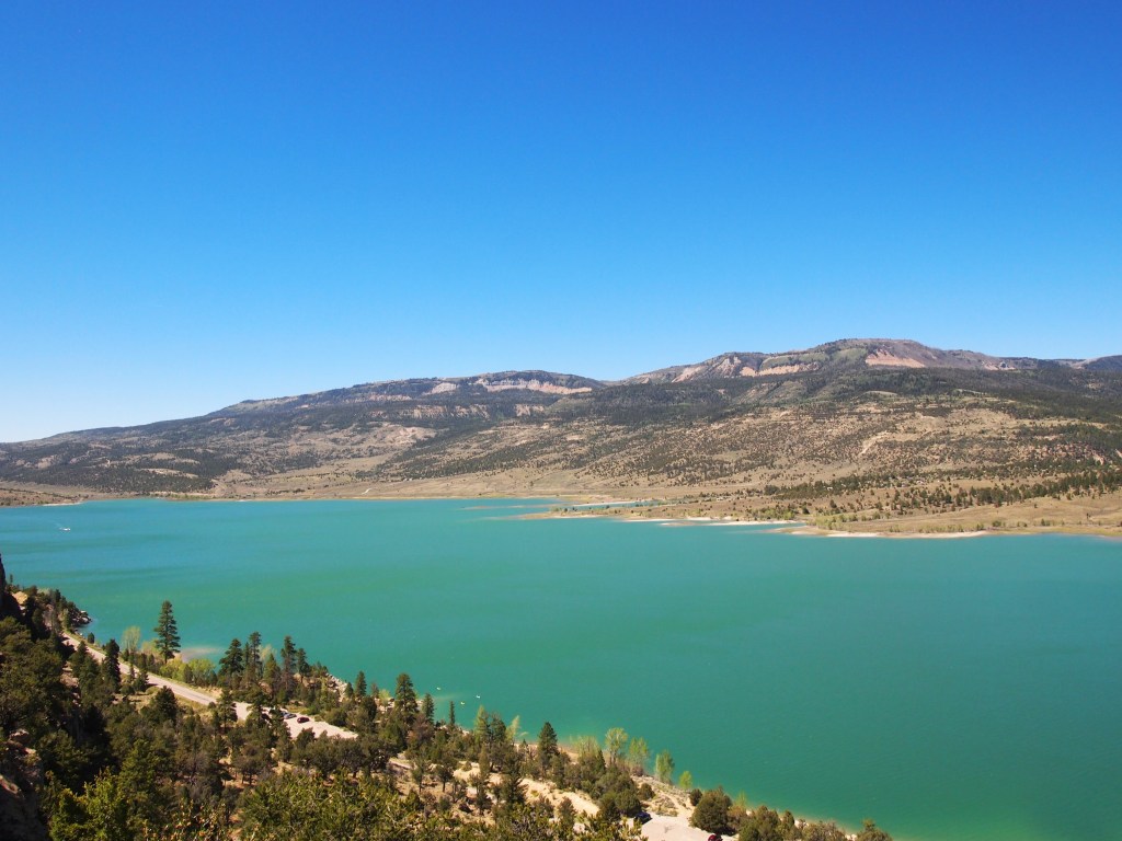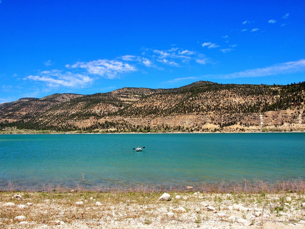For Memorial Day weekend I reserved a campsite at Joe’s Valley Reservoir in Manti-La Sal National Forest for two nights. Zach and I were interested in going back in warmer, sunnier weather, and Ryan and Lisa agreed to join us. We thought it would be nice to go somewhere closer for a change too. This would have worked perfectly if the entire Wasatch front wasn’t also leaving town on Friday afternoon. We sat in the worst traffic we’ve ever encountered on I-15. What should have been a 2.5 hour(ish) trip became 3.5. We had it better than Ryan and Lisa though – they got stuck behind a five-car pileup. Zach and I arrived at our campsite around 7pm and had ample time to set up before dark. It was a gorgeous evening, and the reservoir was more captivating than we had remembered.