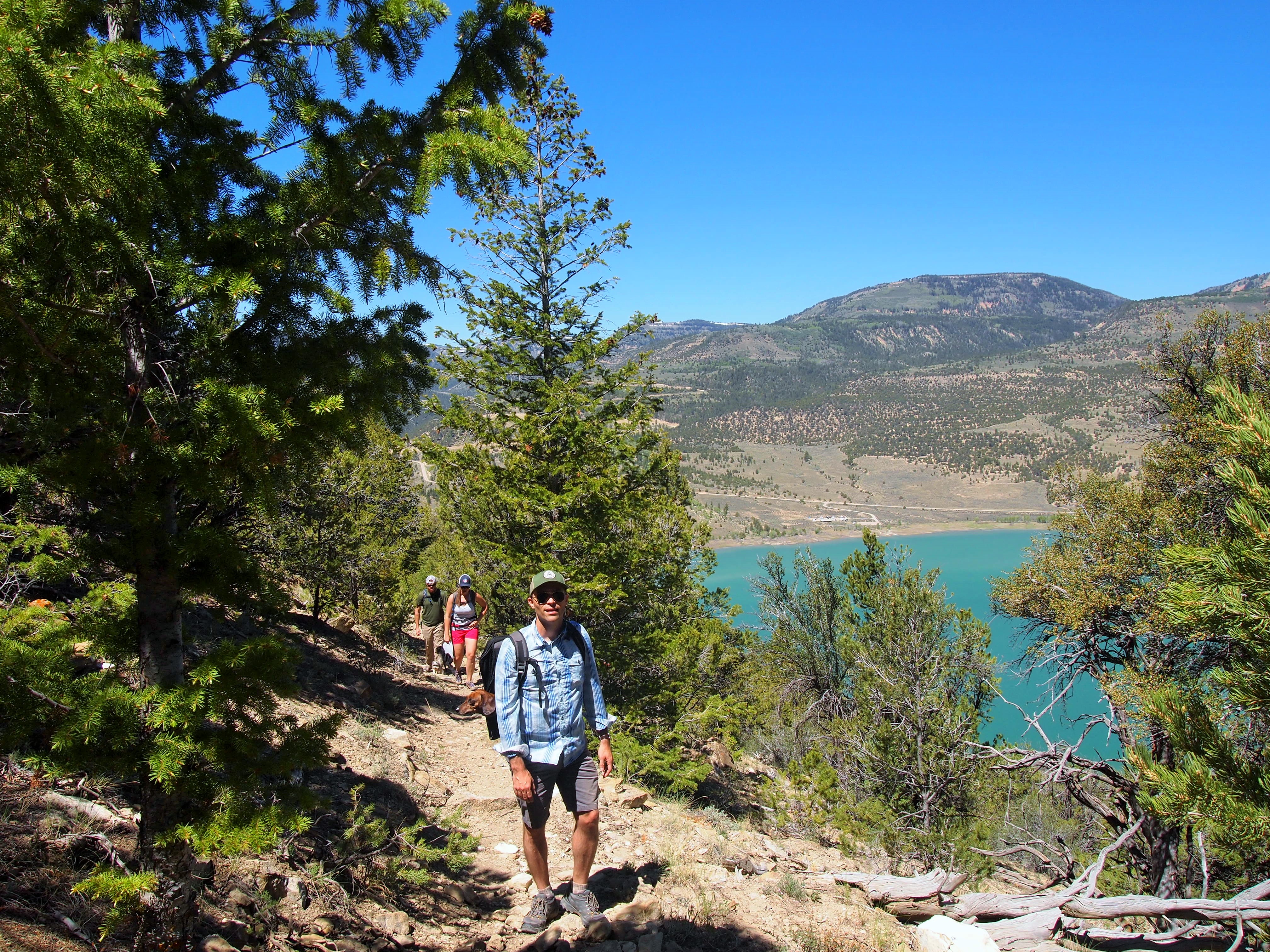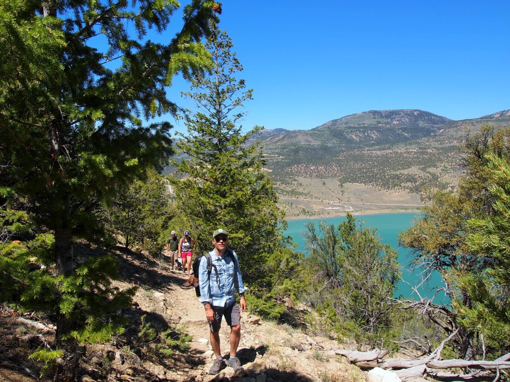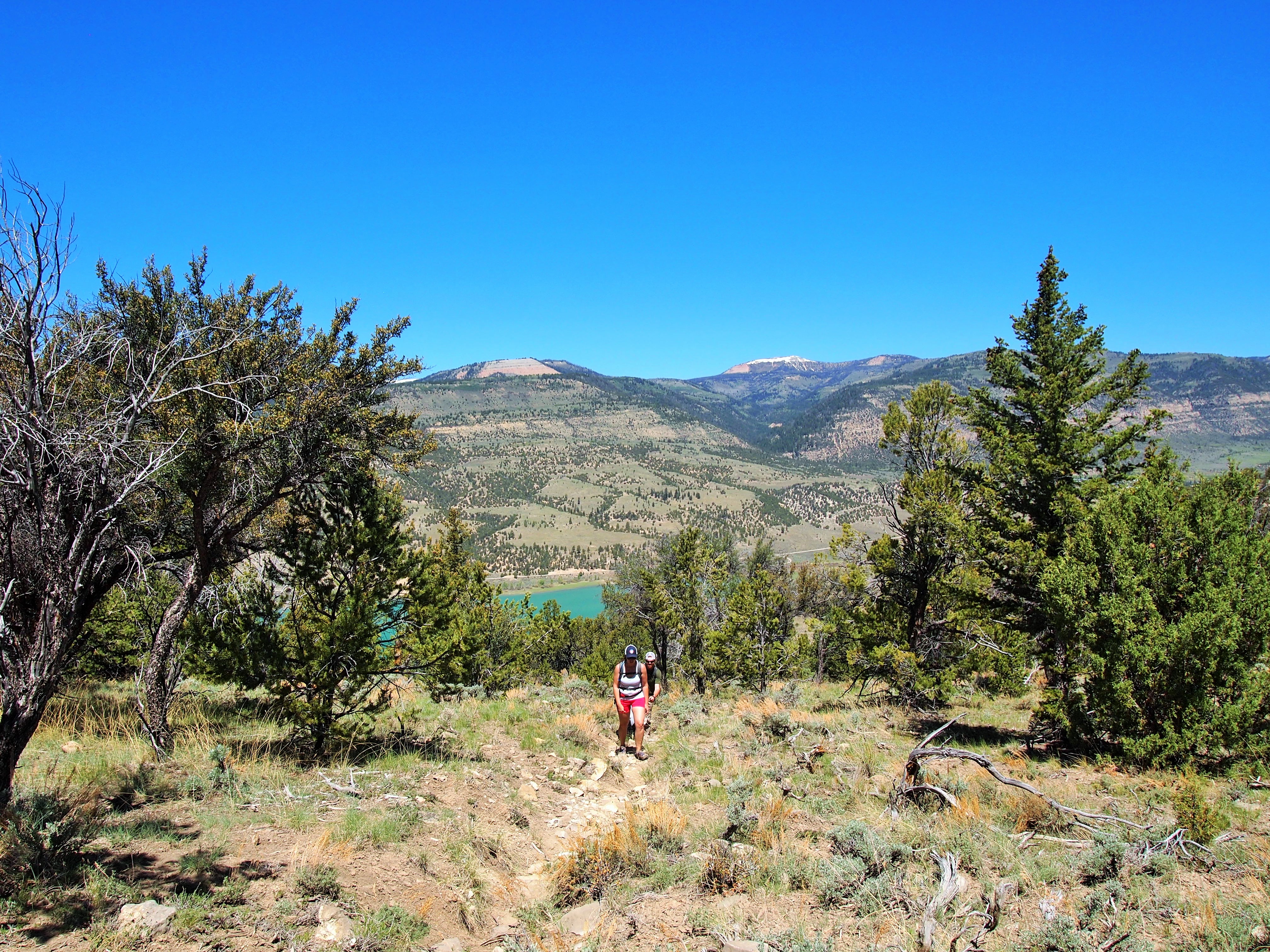 Joe’s Valley is well known for fishing, miles of OHV (off-highway vehicles) trails, and bouldering. There are several hiking trails in the national forest, but I wanted to stick close to the reservoir. We ended up doing part of a CCC trail on the east side of the reservoir. It was much steeper than anyone expected, so we went roughly a mile and 1,000 ft. in elevation before we turned around. (I would have gone farther, but the group overruled me.) One unexpected benefit was a nice overlook of the reservoir and valley below. We got off trail several times at the beginning of the hike, so on our way back down we took care to build extra cairns to signal route changes and at one particularly deceiving junction, Ryan blocked the path going the wrong direction and Zach built an arrow out of rocks. I doubt many people use the trail, but maybe it will help the next hikers!