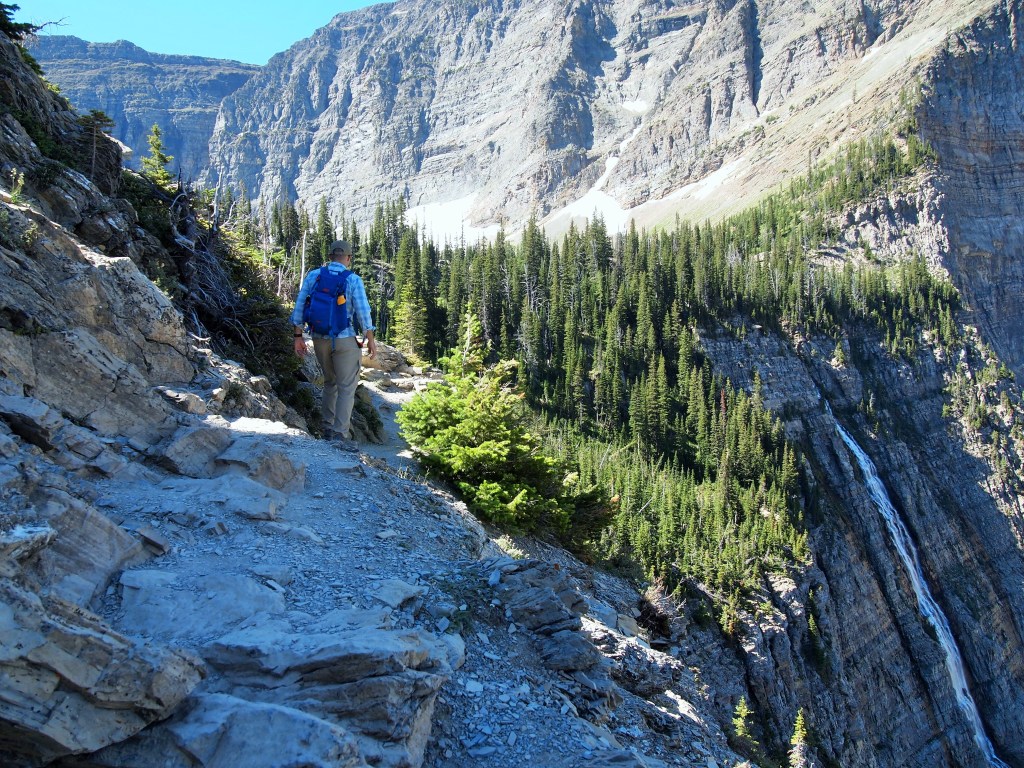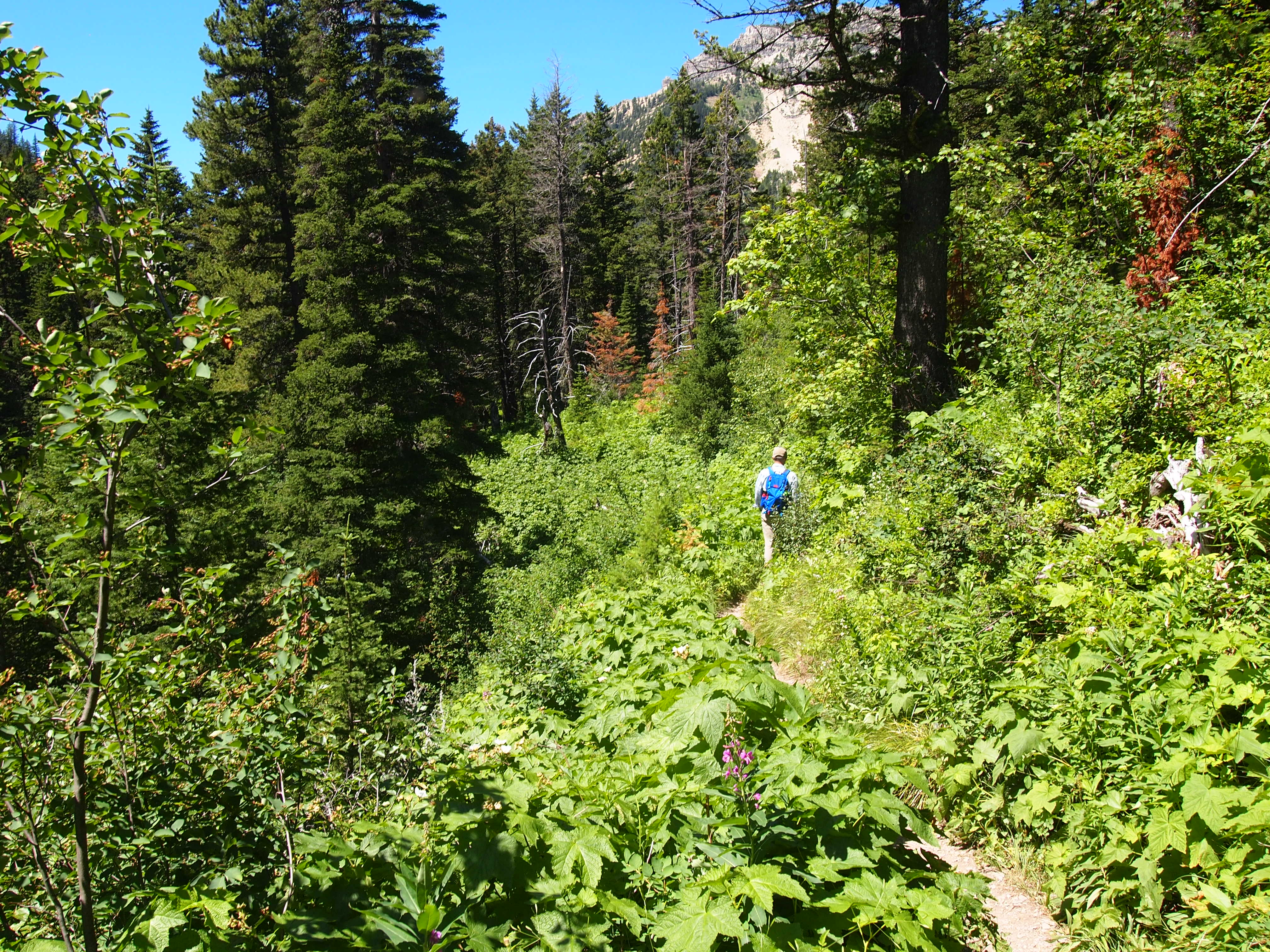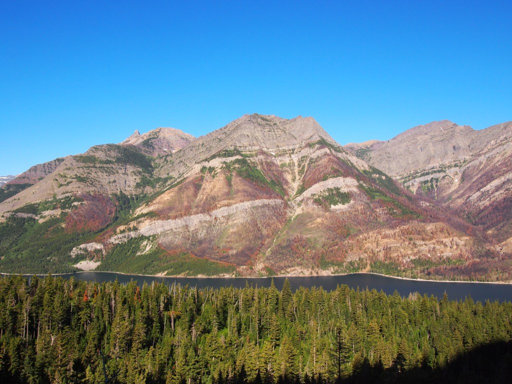 The trail begins on the other side of Upper Waterton Lake, a 15 minute boat ride from the marina. I suppose you could kayak there yourself, but it was much nicer to hop on the boat at the end of the hike instead. Everyone gets off the boat at the same time. Some people hang back, others start up the trail immediately. We were in the latter group. For the first half mile or so, it is a line of people. However, everyone was good about moving over for faster hikers and by the time we reached the the top of the first set of switchbacks, the hikers had all evened out.