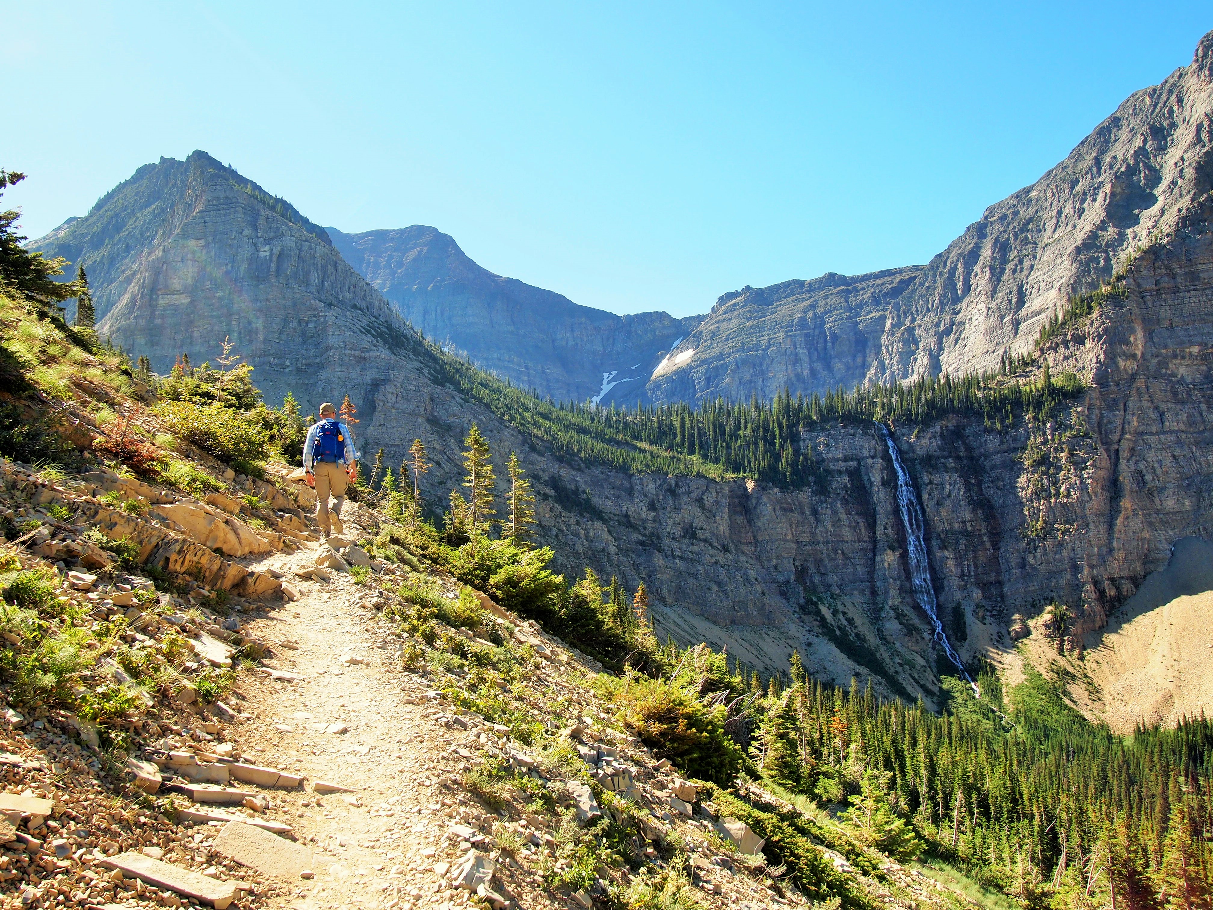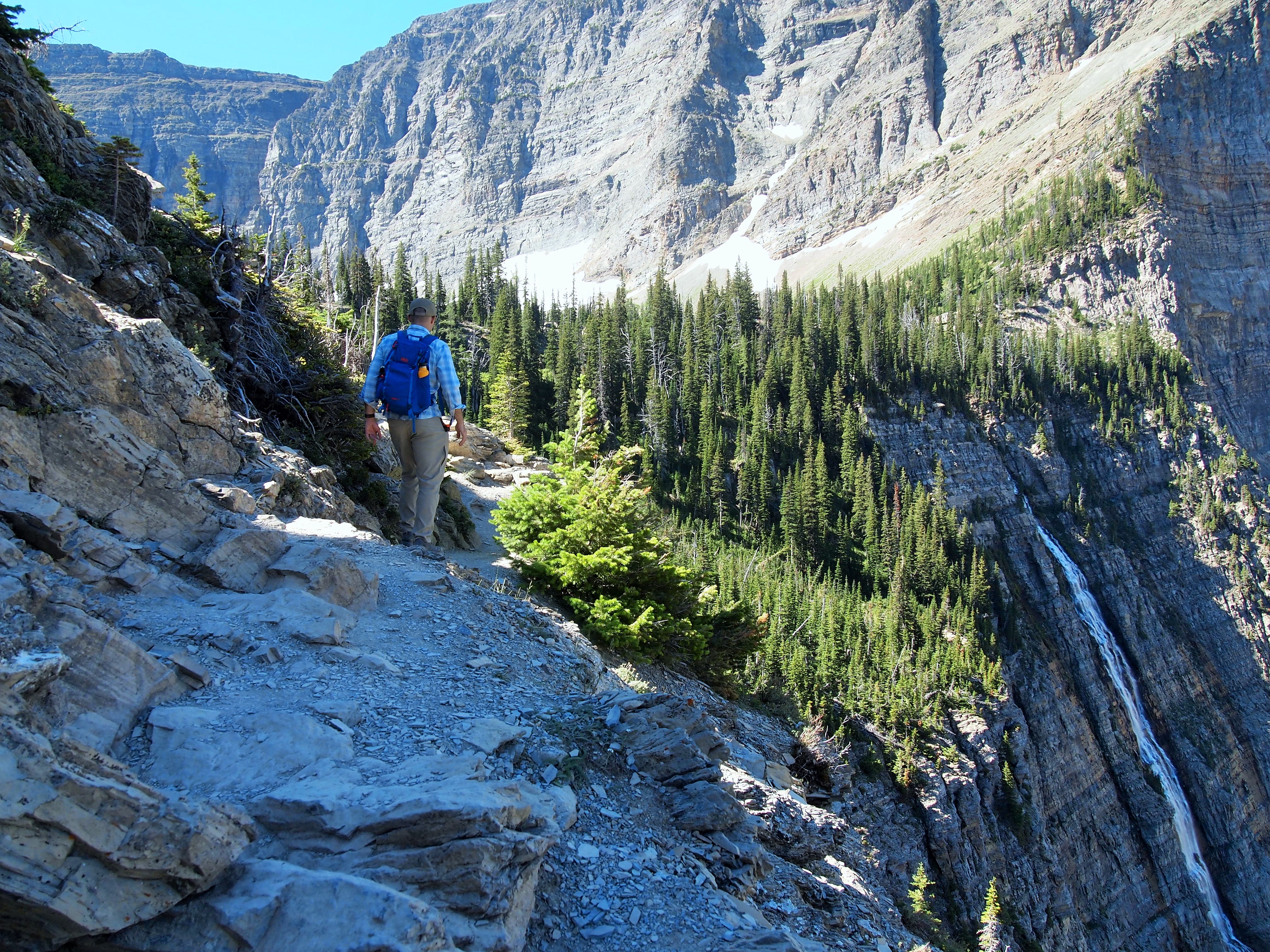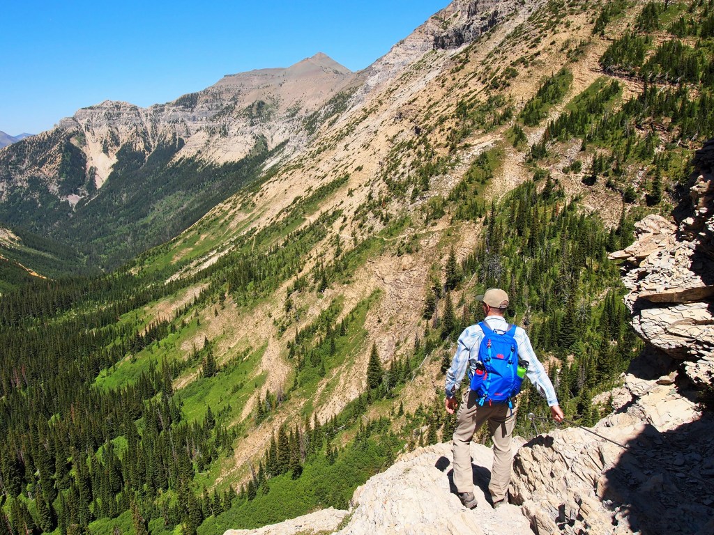 The entire trail is a little under 5.5 miles one way and gains 2,300 feet in elevation, not unlike longer hikes in Utah’s Wasatch Mountains. However, this trail has a twist. Before reaching Crypt Lake, hikers have to traverse a long, narrow shelf, climb a ladder, crawl through a tunnel, and carefully scale the rockface using fixed cables.