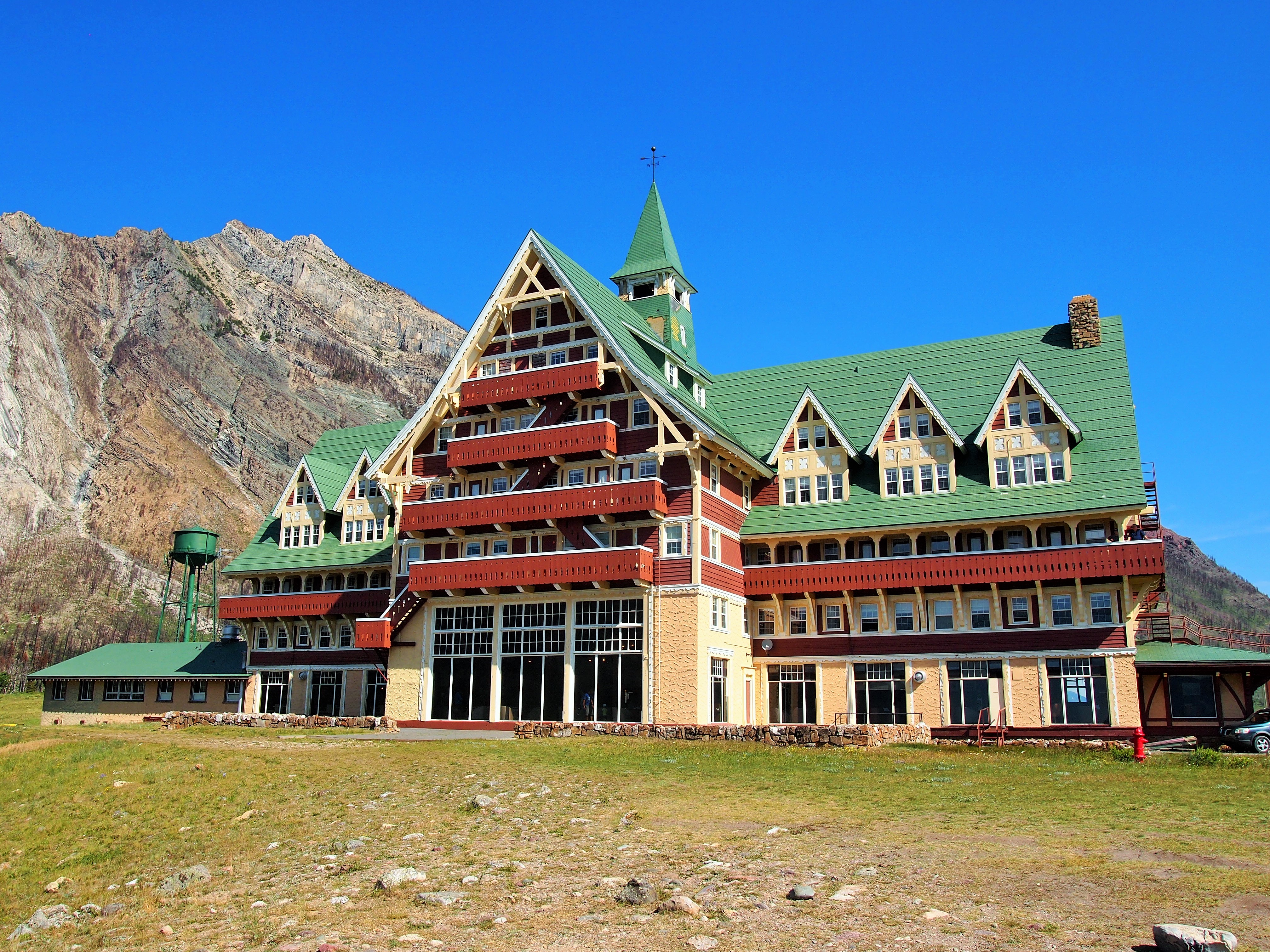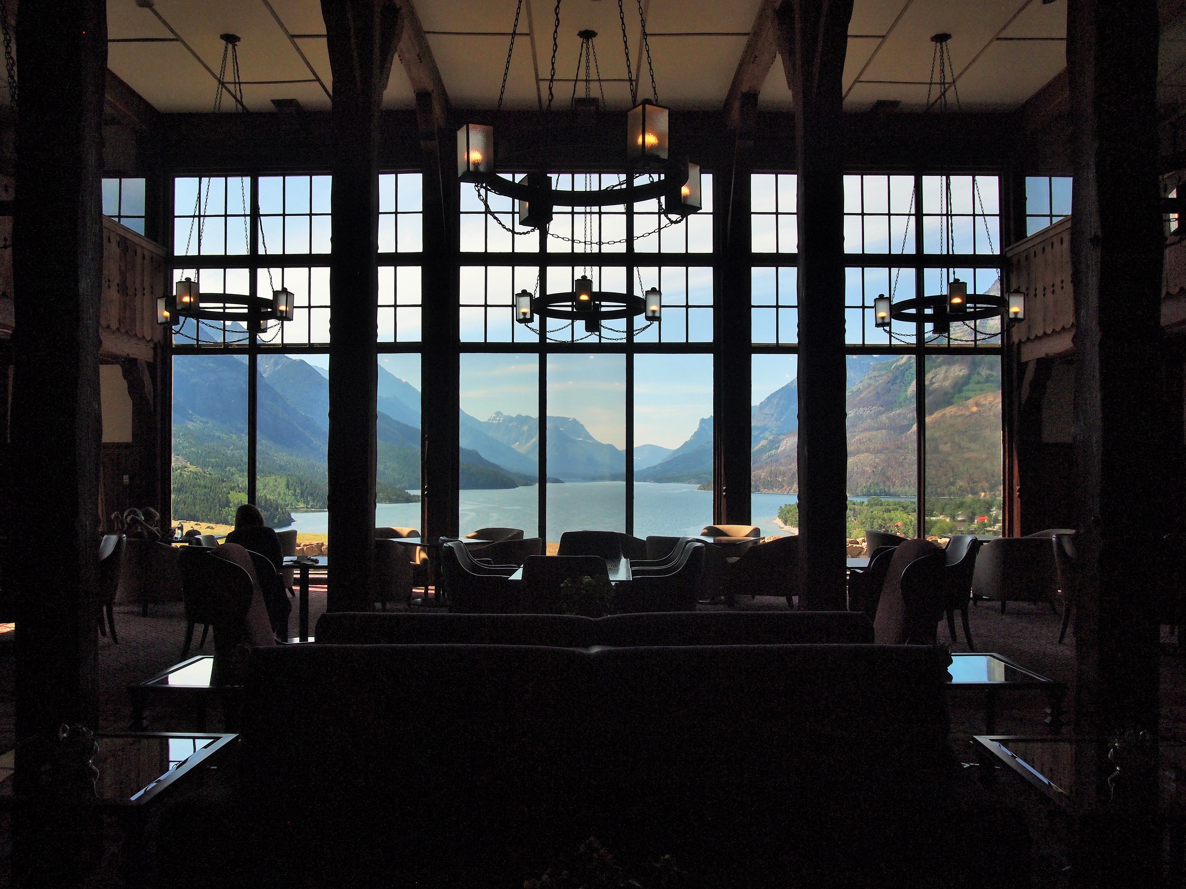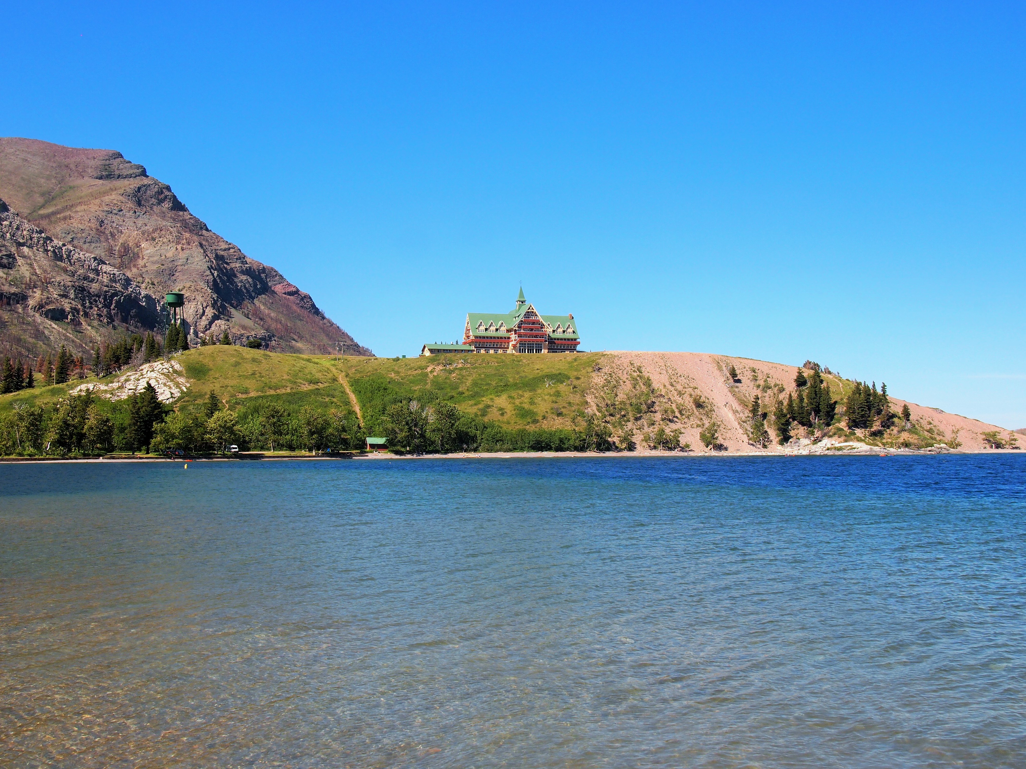 On Tuesday morning, we packed up our site and had coffee and breakfast in town at a really sweet place, Windflower Corner Coffee. The owner and her two school-aged daughters work the shop during the summer season and then move back to a nearby town. We found the town post office and mailed a bundle of postcards before making our way toward our last stop in the park, the Prince of Wales Hotel. Built to emulate a Swiss chalet, the hotel was part of the string of lodges built by the Great Northern Railway to draw visitors (via their railroad) to Glacier and Waterton. The hotel opened in July 1927 and celebrated its 90th birthday last year. A month later the devastating Kenow wildfire came quite close to the hotel. Thankfully, the hotel emerged unscathed and reopened for guests this year. The hotel is an iconic part of the Waterton landscape, and we were thrilled to finally visit. The view from the hotel’s lobby is stunning. I could sit there all day. Equally great is the scenery from the grounds where you can admire the nearby town and the spectacular mountains which frame Upper Waterton Lake.