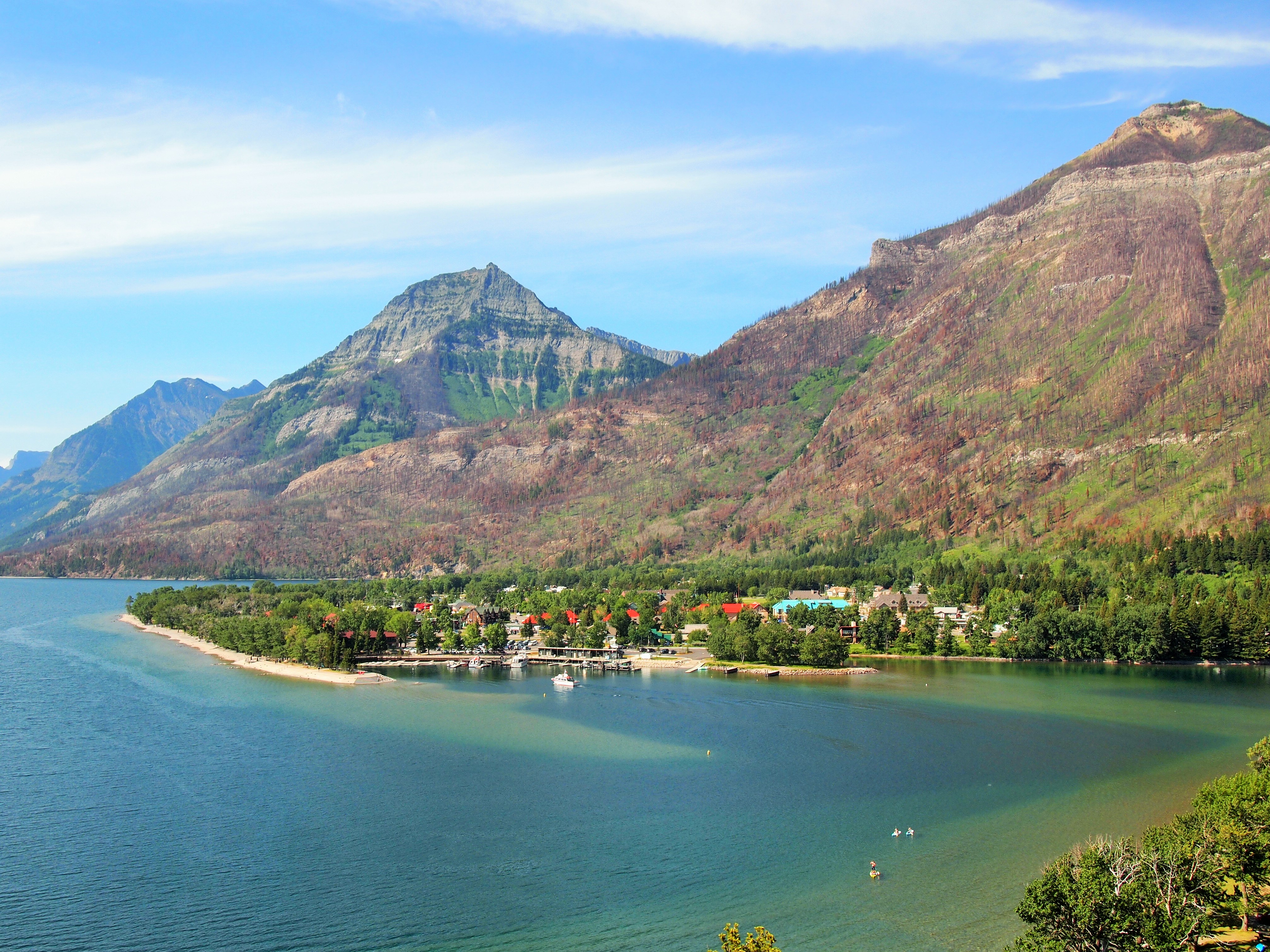We used the Chief Mountain border crossing to travel into Waterton Lakes. Only open in the summer months, it’s a pretty route to the border, devoid of much traffic. There were maybe four or five cars in front of us, and we passed through fairly quickly. On the other side, we were welcomed by both flags marking the entrance to Glacier-Waterton International Peace Park. The two parks merged to form the world’s first International Peace Park in 1932, acknowledging that the environment doesn’t recognize borders. Today, Waterton and Glacier continue to work together to jointly manage the parks.