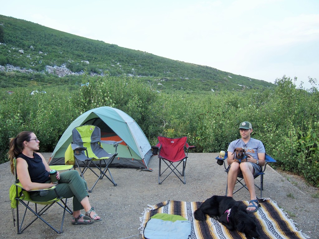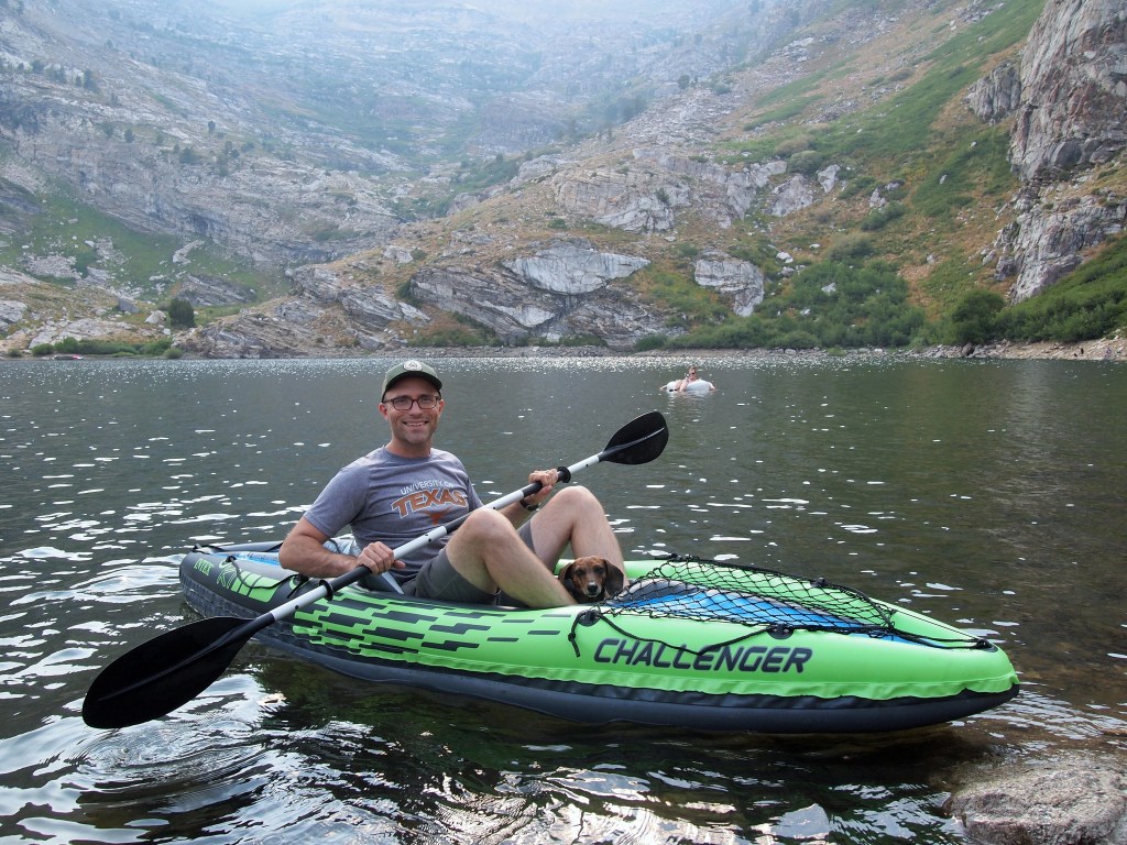 We arrived back at the campground in the heat of the day and got ready to go swimming/floating/kayaking. We only managed to stay out for an hour or so because as soon as the sun dipped behind the cirque, it became cool. Though it spoiled our lake time, it was a welcome relief.