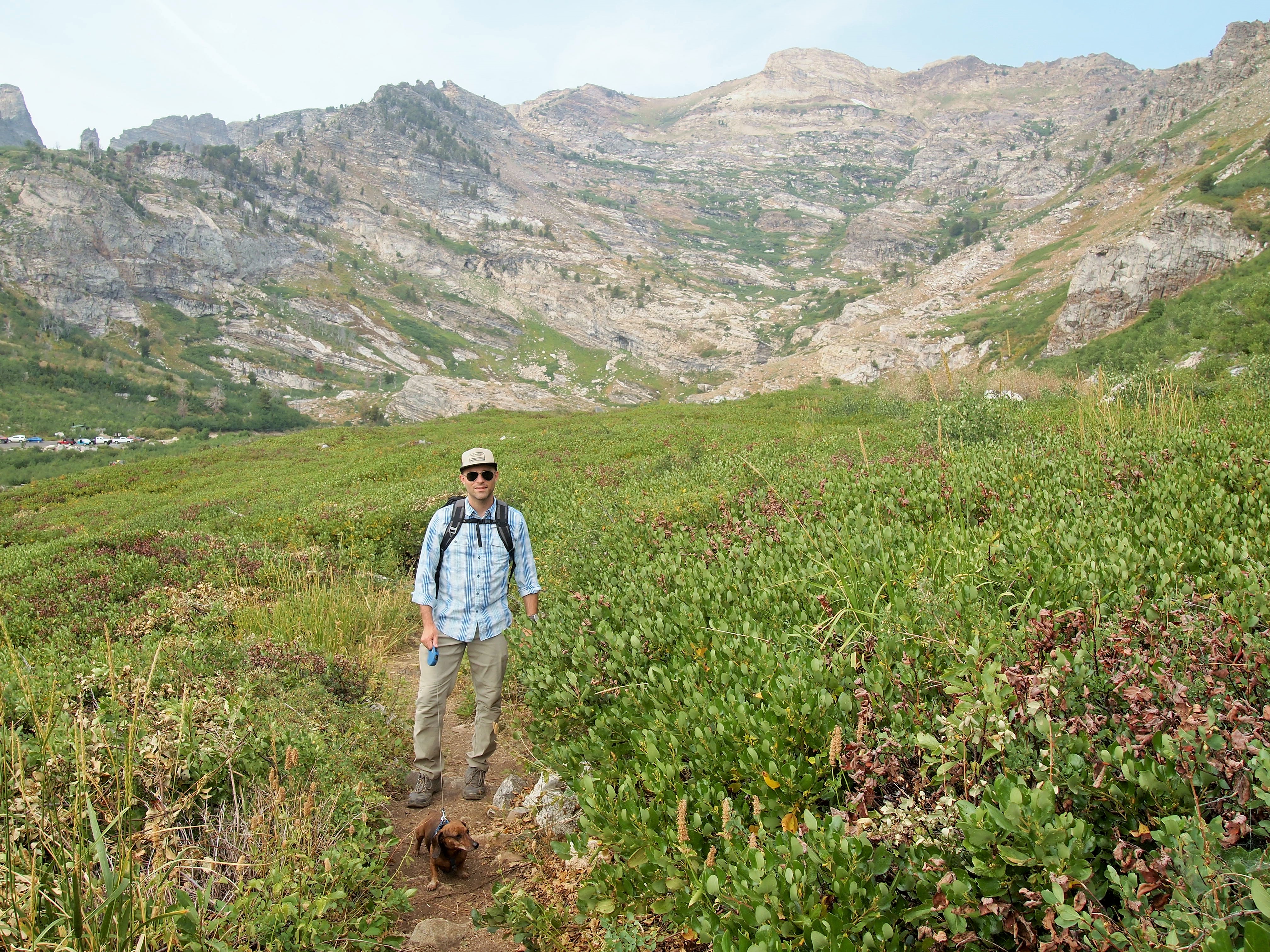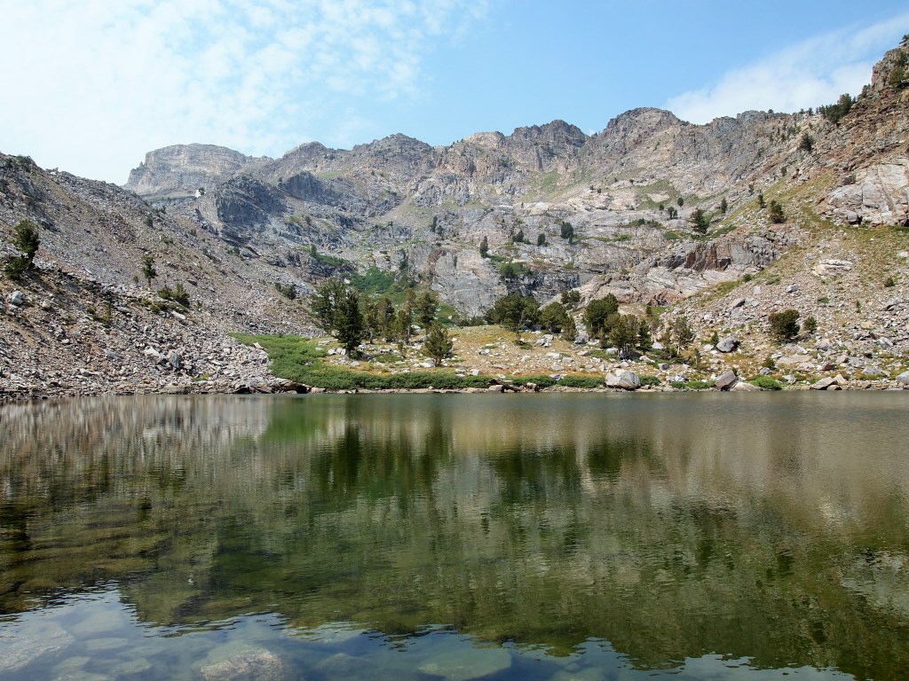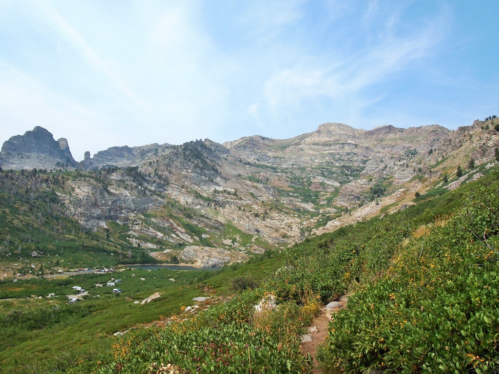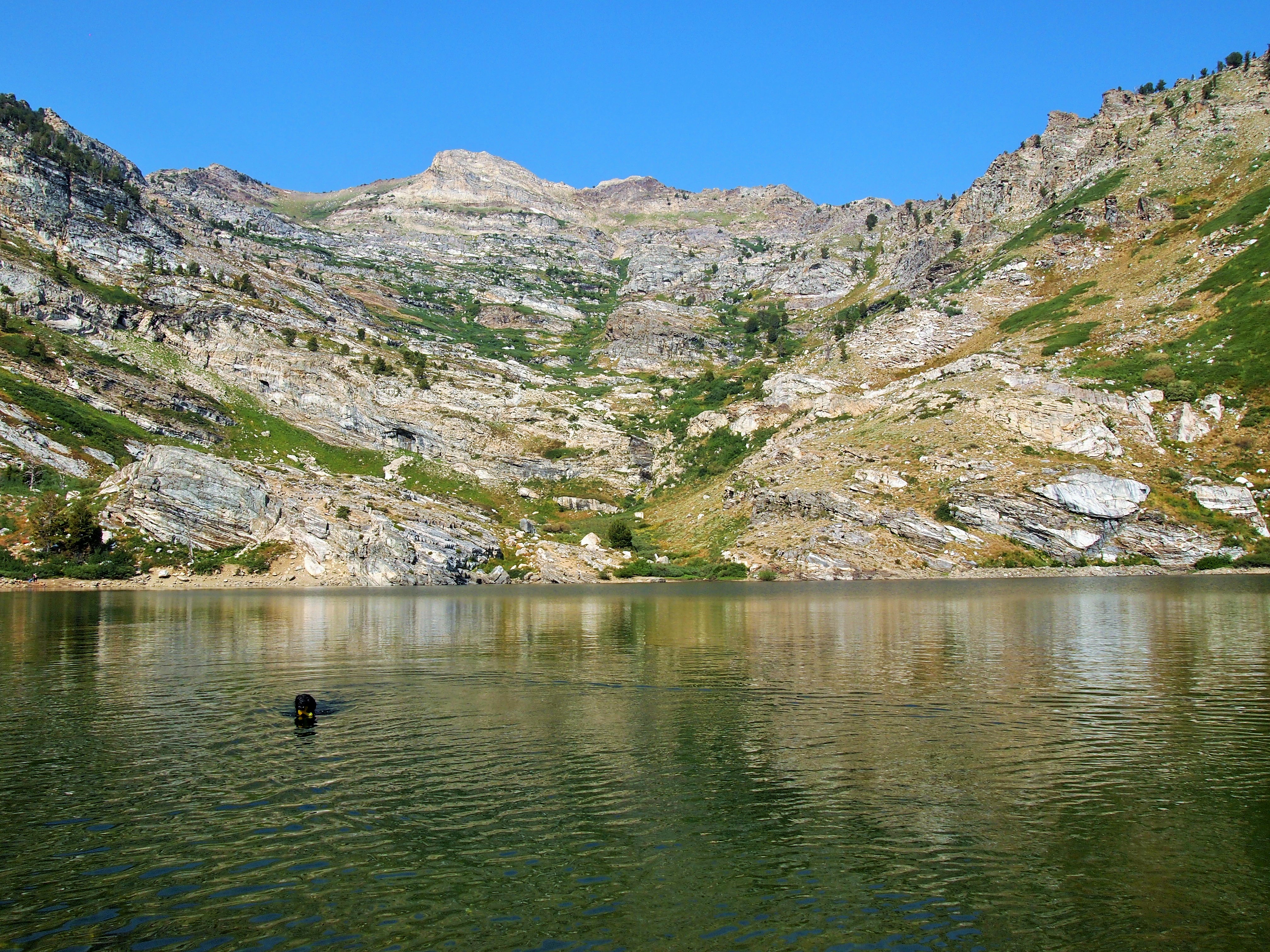 Smith Lake was tranquil, and it was nice to hang out without any objective for a while. We continuously tried to push Tru into the water, but he resisted our efforts. The lake was essentially just on the other side of the cirque, but felt farther away in its secluded basin. I regretted not bringing my book, so we could stay longer. About halfway down we encountered six hikers headed up, and I realized we had timed it just right.