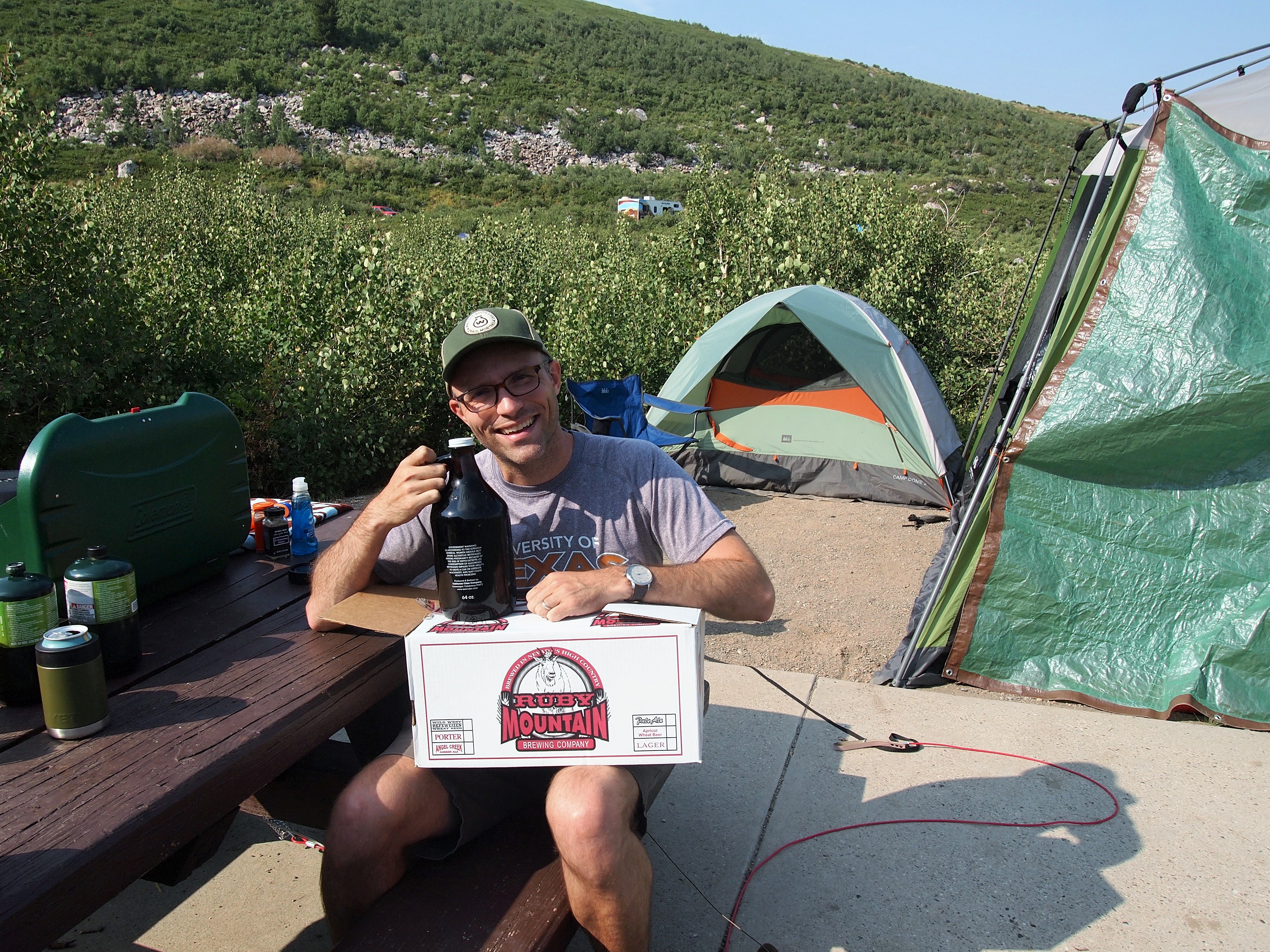 A few weekends ago, before the full barrage of the fall semester hit, we escaped to Nevada with Ryan and Lisa for a weekend camping trip in the Ruby Mountains southwest of Wells. By the time we decided to go, all of the reservable spots has been booked. But 8 or 9 sites were set aside for walk-ups (basically first-come, first-served), so we took our chances and hoped to get a site when we arrived. We left SLC late in the afternoon and arrived early in the evening just in time to snag a spot close to the lake. The campground is small – only 26 sites – and compact. Dwarf aspen provided decent privacy, but there was little to buffer the sound from other sites.
