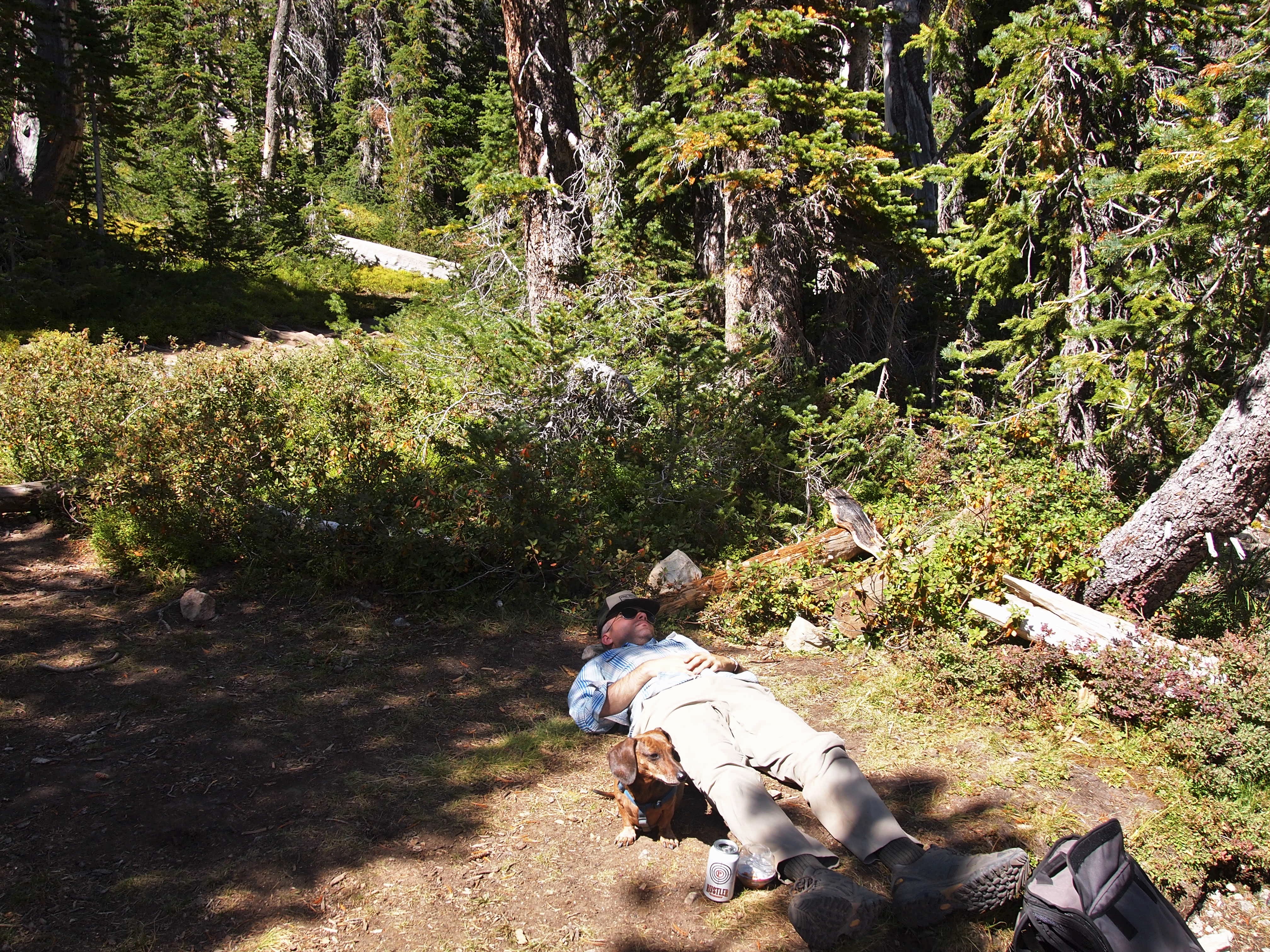 The hike down was fairly uneventful. Truman went THREE additional miles bringing his grand total to 8+ miles! At every water crossing he tried at all costs to stay on the stones and out of the water which made for a ridiculous sight. On our second-to-last crossing he appeared to hurt his back leg, so we forced him to ride in his pack for the duration of the hike. By the end, we weren’t excited about the additional half mile to our car, but we trudged on. It was great to get back to our campsite for dinner and another beer. I wanted to stay up to star gaze, but my eyes wouldn’t permit it. We retired to the tent fairly early, just after dark, and fell asleep shortly thereafter.