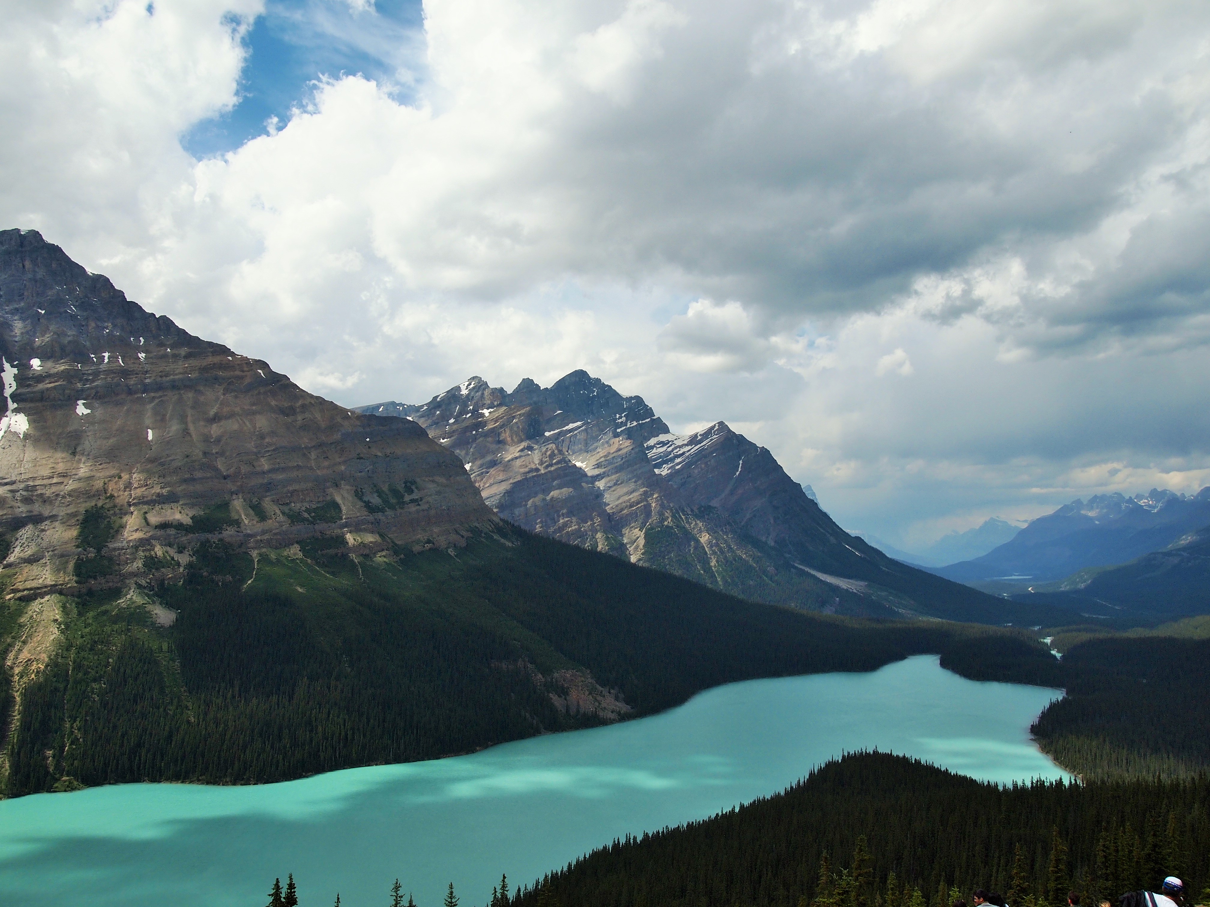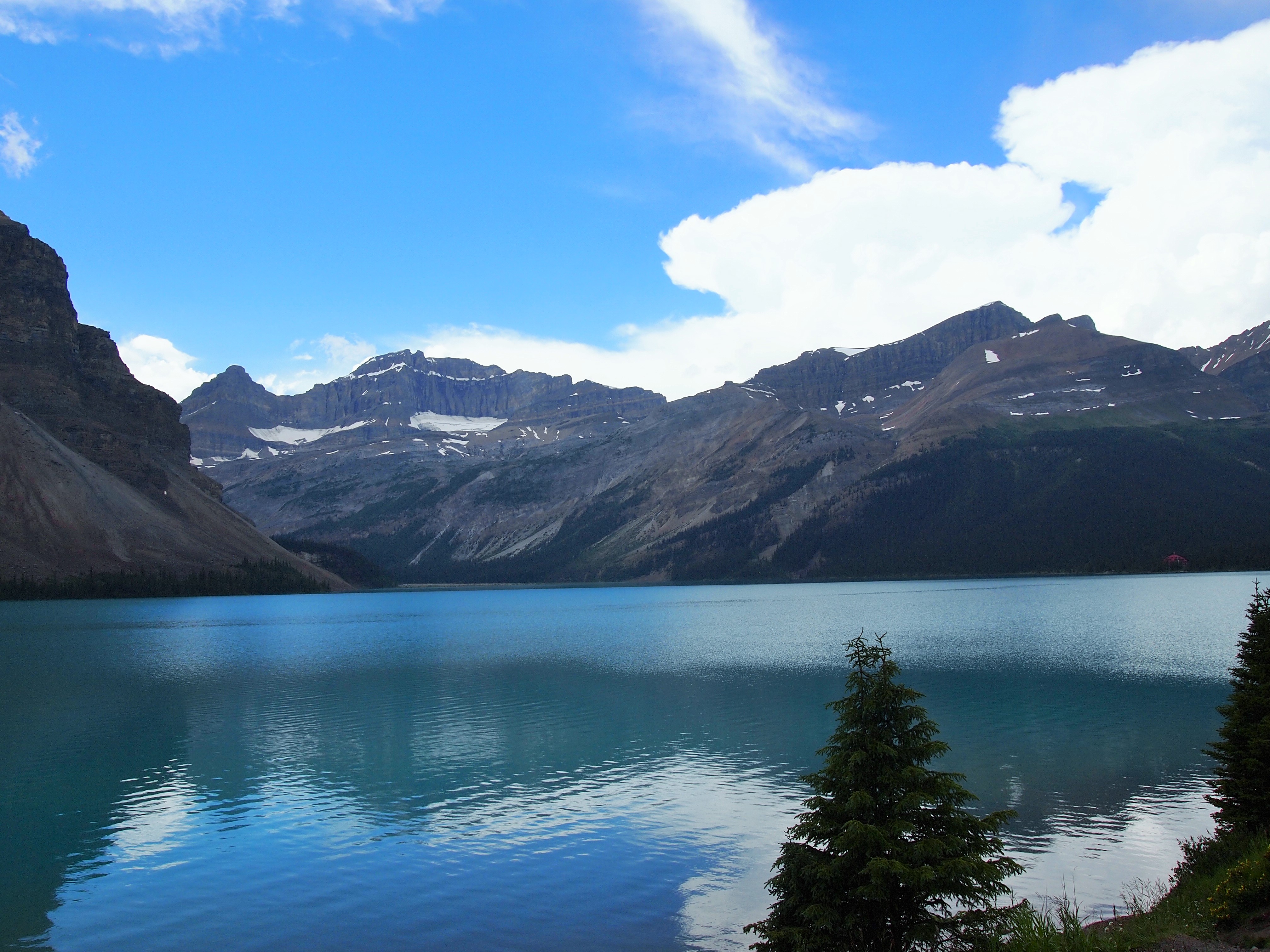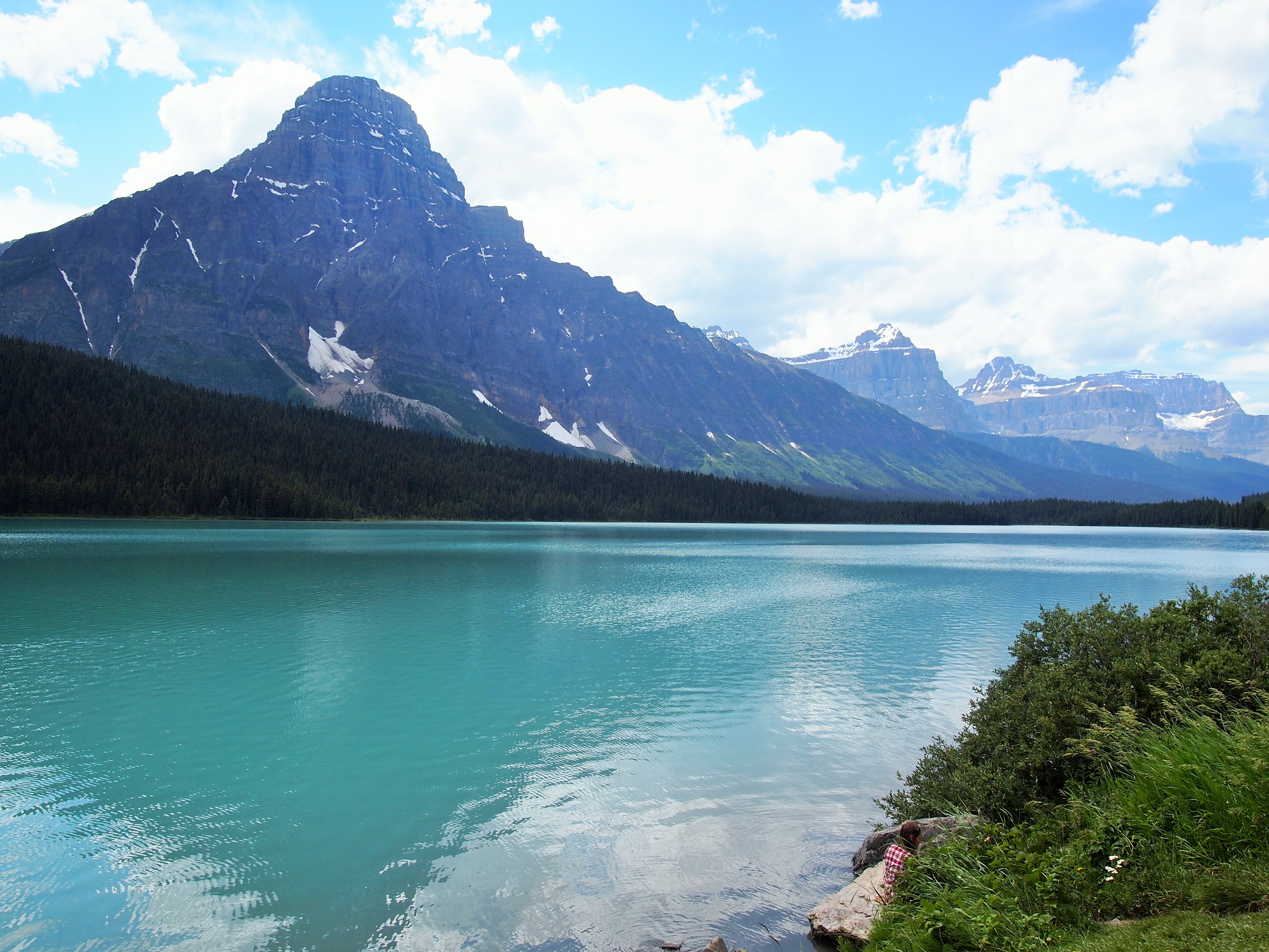 The weather began to shift as we walked back to our car and soon a dark sky brought thunder, lightning, and rain to our scenic drive. We re-joined the Trans-Canada Highway at Castle Mountain and by-passed Lake Louise (we would visit on our return from Jasper). The downpour was brief; by the time we reached our next stop it was over, and we had hope for a mostly sunny passage.