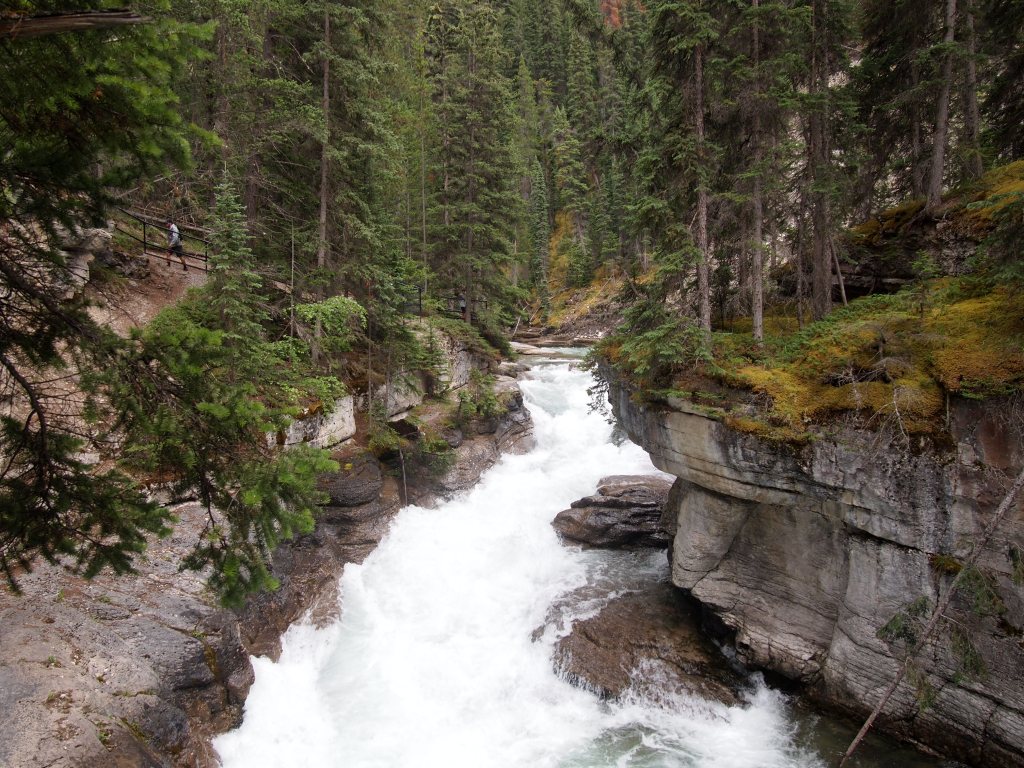 The beginning of the hike led us down a beautifully forested path alongside the Maligne River. The skies were overcast, but there wasn’t any rain or thunder – yet. After Fifth Bridge we climbed above the river for a nice view before slowly descending back to the river’s side. For the rest of the trail, we remained along the canyon’s rim, watching the progression as the river narrowed and plunged deeper into the gorge. There were plenty of nice overlooks along the trail and each bridge crossing offered decent views as well. The rush of the water and overcast skies were sublime; it was the perfect combination.