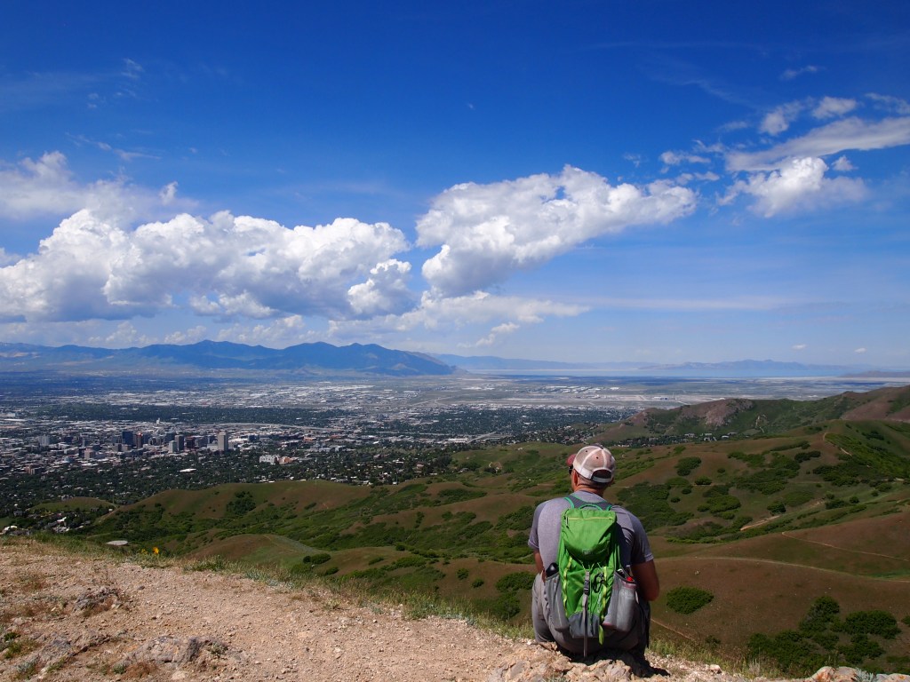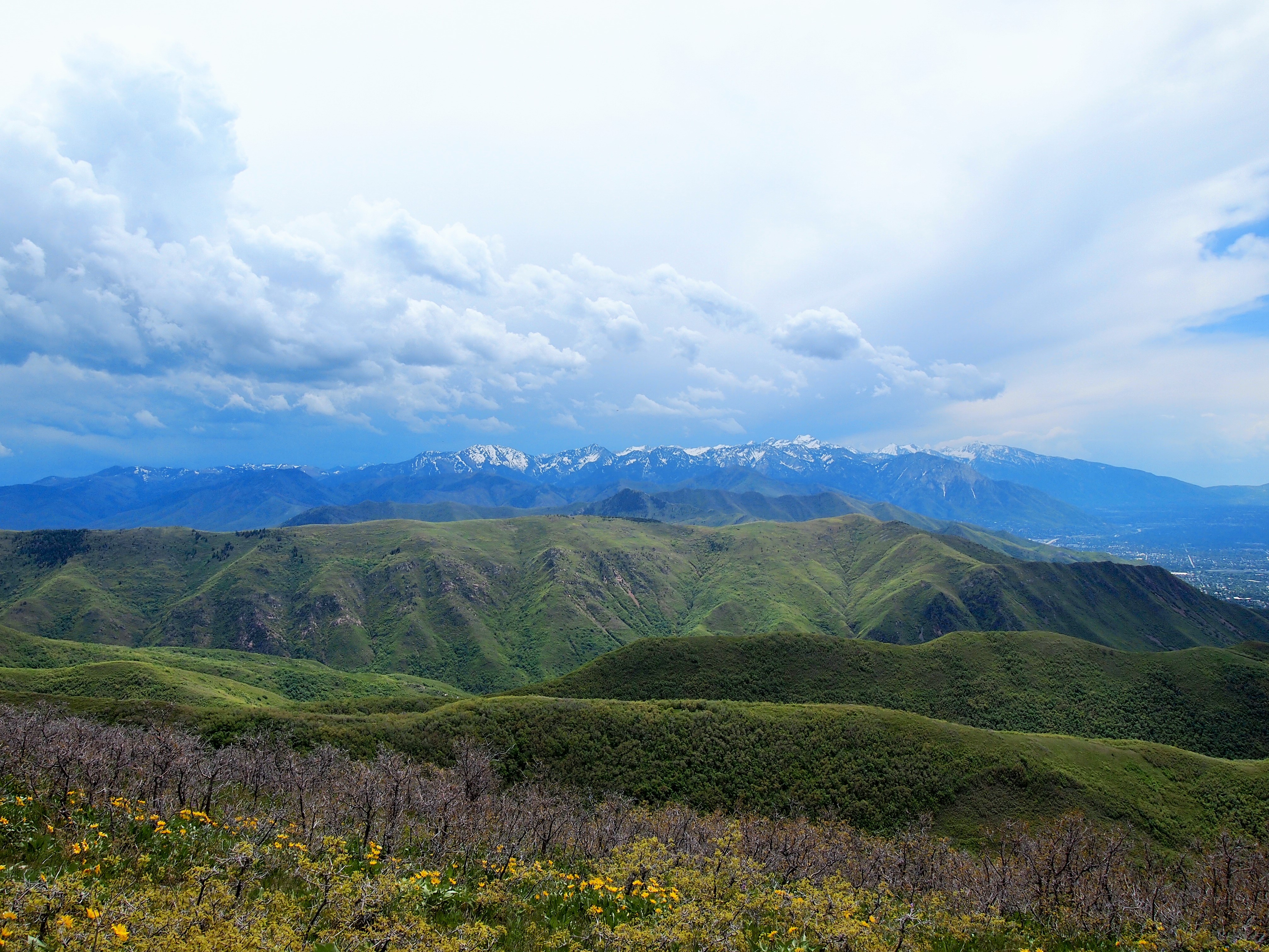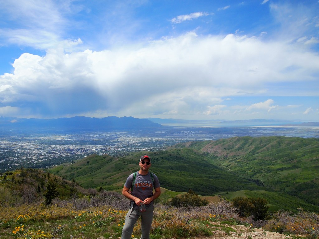 At the end of May while there is still snow in the mountains, we can hike the foothills above the city. May is an ideal time to take advantage of the foothills. It’s not too hot, the hills are still green, and the views of the valley are clear. We started out with the intention of hiking to the Twin Peaks, but then Zach set his sights on Little Black Mountain in the distance. We were due for afternoon thundershowers, so we kept an eye out. We reached an area just below the true summit and decided to head back down. We could see the rain approaching and didn’t want to get stuck exposed on the ridgeline on our way down. We still had stunning views of the city, the Wasatch Mtns., and even Antelope Island and the Great Salt Lake.