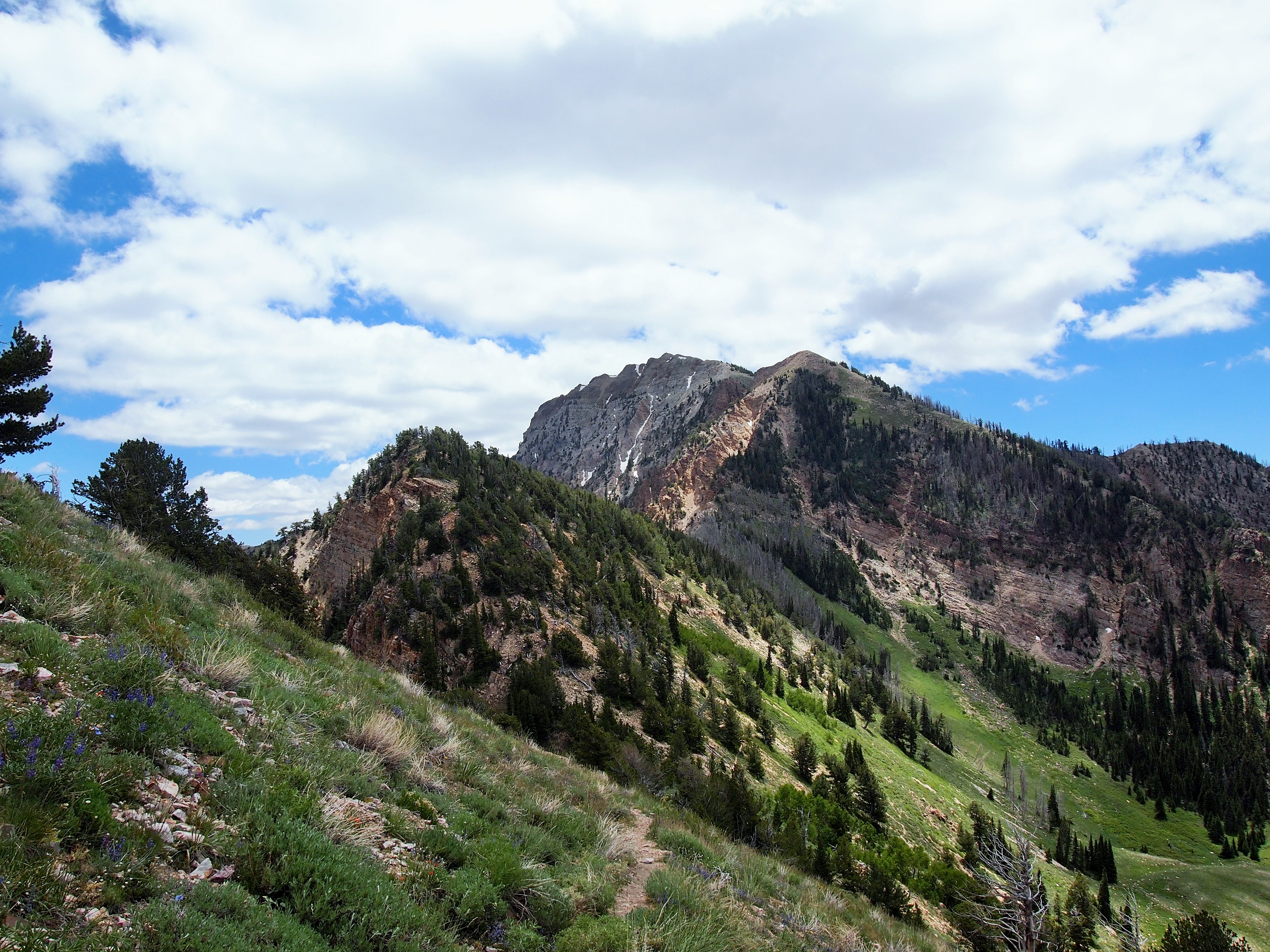 The following weekend, I aimed for a slightly more tame hike to Desolation Lake. Accessible from either Millcreek or Big Cottonwood Canyons, it’s a popular destination for day hikers, mountain bikers, and backpackers. We used the trail from Big Cottonwood Canyon for a tranquil 7.6 mile round-trip hike. Our ascent was pretty pleasant. The trail was lined with wildflowers, and there were few people out. Our descent was filled with mountain bikers and lots of day hikers heading toward Dog Lake. However, the lake itself had few visitors, and we were able to find a secluded spot to snack and relax.