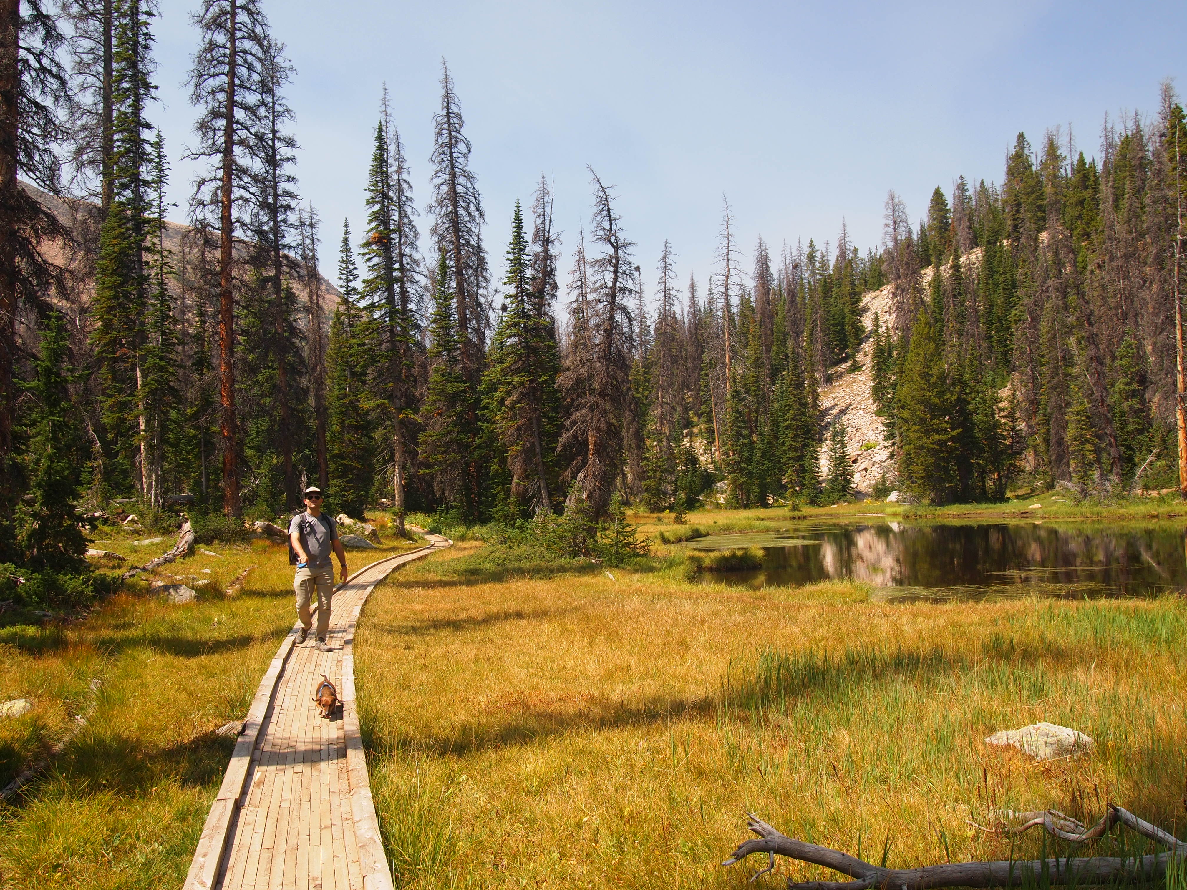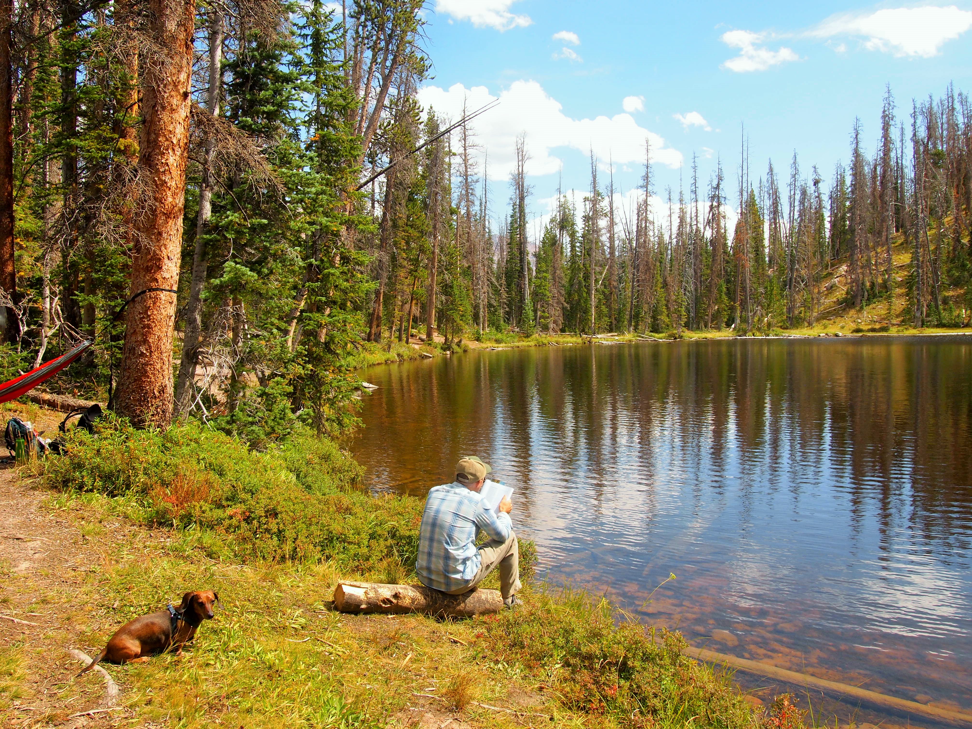 When we returned from Canada, we were eager to hike in the Uinta Mountains before the short summer season ended. We took Truman out for an easy 3.5 mile (RT) hike along the Fehr Lake Trail. Surprisingly, there were very few people out and we had the trail mostly to ourselves. We found a secluded spot along the banks of Hoover Lake and hung out for a while on a breezy day.