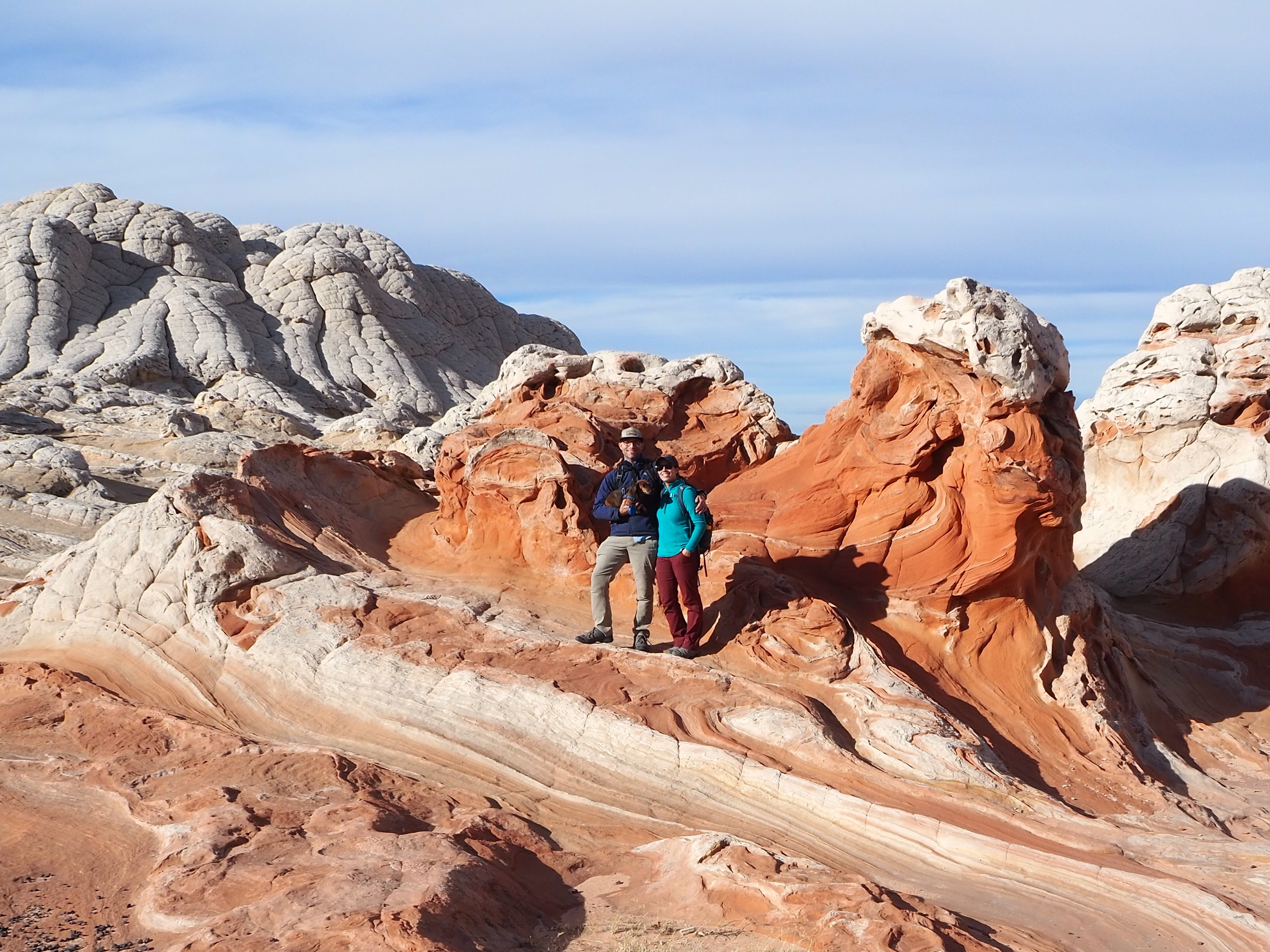 One of the places I most wanted to visit on this trip was White Pocket in Vermilion Cliffs National Monument. We first heard about it on our trip to Kanab last year, and I’ve kept it in the back of my mind for a future trip. I didn’t do any research until the weekend before the trip, and in doing so discovered that it’s not very easy to reach. In fact, people often get stuck trying to get there. Cell service is available, but spotty and you might have to climb on top of something to get a strong enough signal to call out. After hemming and hawing for a while, I decided I wanted to go badly enough that I was willing to pay for a tour. Why ruin a perfectly good day (or days) by getting stuck when we could be ensured of a smooth, anxiety-free trip? Zach didn’t quite see my side of it, but since I offered to pay he didn’t have much room to argue.