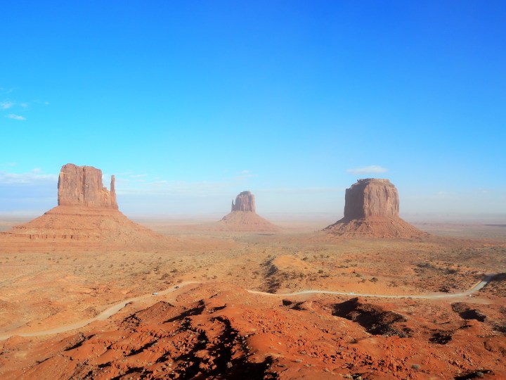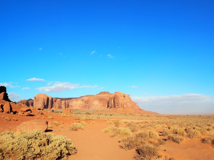On our way out we did stop at the Mitten Buttes. Either the wind had gotten stronger or we were no longer protected by the barrier of mesas because it was difficult to even look at the view with my eyes. I snapped a couple photos and ran laughing back to the car. Zach clearly didn’t believe how windy it was and decided to get his own photos. I think he encountered stronger wind gusts than I did!