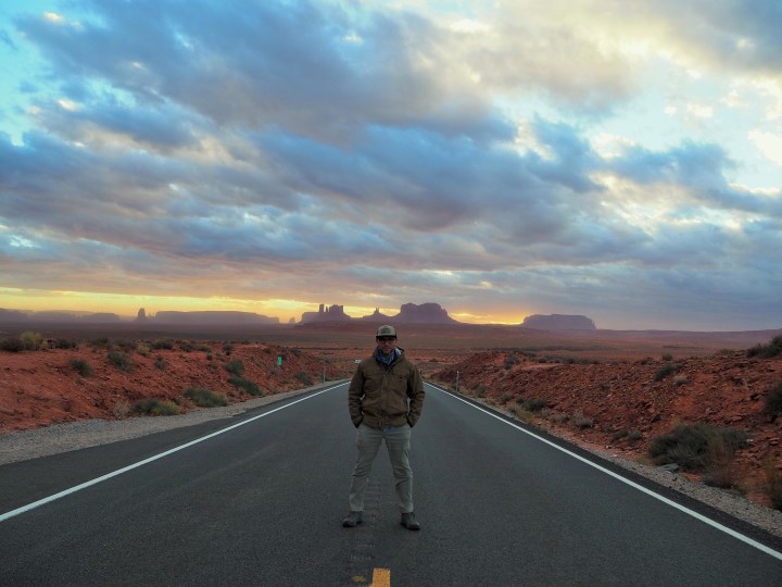 We left the park and crossed back into Utah. We planned to stop at the “Forrest Gump Hill” a spot which has really blown up on social media. It was a gorgeous view of the towering monuments below. The wind was still blowing strong gusts and it had gotten significantly cooler with our elevation gain. Truman was not excited to be outside at all. I liked our view off the road, but the iconic photo is on the road itself. We managed to wait out a couple other groups of people and I took a decent photo of Zach. There wasn’t much traffic on the road or tourists, so I think we were lucky.