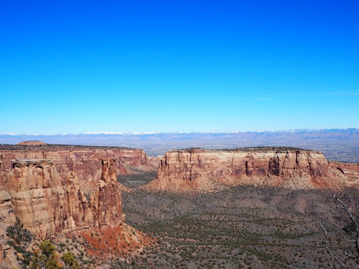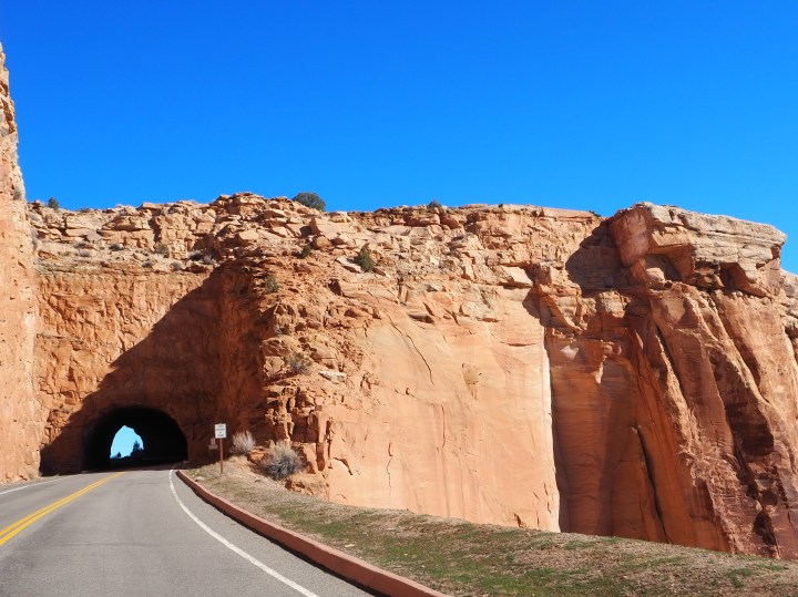 We began at the West Entrance near Fruita and had the road virtually to ourselves. I was worried that our later 10am start meant there would be more people, but we only began to encounter more tourists the closer we got to the East Entrance and noon. We made a steady climb up Fruita Canyon and a few tunnels to reach the plateau’s rim and a couple of spectacular viewpoints of Grand Mesa, the Book Cliffs, and Fruita.