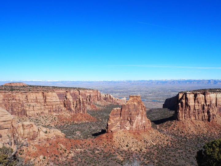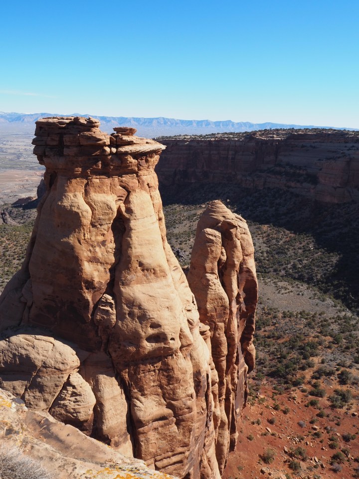 As we neared the East Entrance, the overlooks became more populated. We stopped briefly at Red Canyon Overlook which offers a view of Grand Junction through the canyon walls, and again at Cold Shivers Point, but overall, the eastern overlooks were my least favorite. I favored the dramatic vistas into Monument Canyon. Of all the hikes we could have done, I would have liked to do the Monument Canyon Trail which leads through the heart of the canyon and passes the giant monoliths we glimpsed from above.