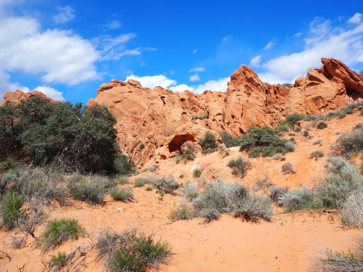 Since this was a make-up weekend for us (see Yant Flat), I had a couple of things I wanted to do. First on my Utah bucket list was Snow Canyon State Park. Since we couldn’t take the dogs to Snow Canyon, we went back to the house to pick them up before lunch. We grabbed tacos at Angelica’s per Lisa’s recommendation. Reinvigorated, we set out for our afternoon hike. Lisa and I had chosen two potential hikes both in Red Cliffs National Conservation Area (NCA). We thought we’d try the lower section of the Red Reef Trail first and squeeze in Babylon Arch at the end of the afternoon.
