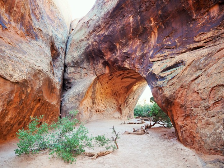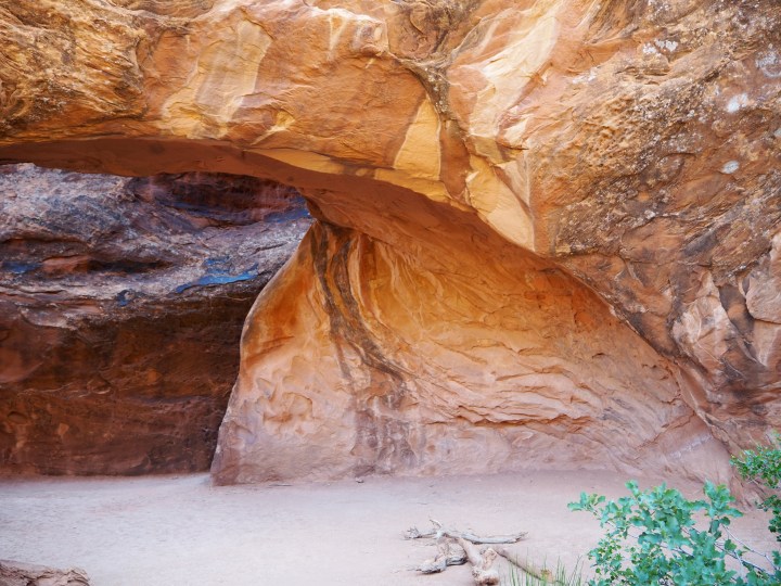 In stark contrast to Partition Arch, Navajo Arch was quiet when we arrived. It’s a thick arch with a wide base, almost cave-like. It was shrouded by pinyon pine and juniper at the entrance, but once we passed underneath it was spacious and reverent. It was the only place of true solitude on this hike, and ultimately, my favorite.