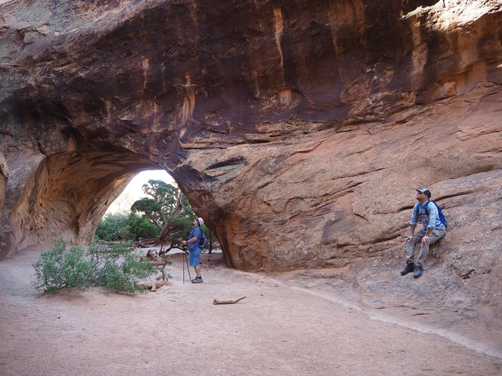 When we reached Double O, we were all fairly tired. Since it’s the most popular destination beyond Landscape Arch, there were lots of people milling about. None of us were interested in sticking around long. In retrospect, I wish I had walked around a bit more and taken some different photographs.