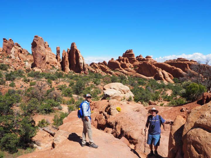 We arrived at Dead Horse Point on Friday afternoon, and my dad told me he was game for Devils Garden. We decided to get up early on Saturday morning and drive into the park. My dad’s pal, Mark, decided to tag along with us too, making us a party of four.