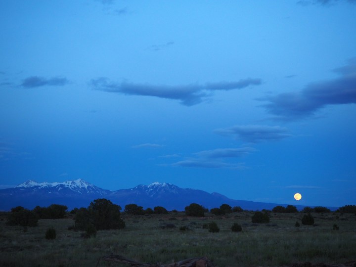 At the end of the day, as we prepped a campfire, Zach looked up and noticed the moon rising above the horizon. Set next to the La Sal Mountains from our perch at Dead Horse Point, the full moon mesmerized our entire group. We walked to the edge of the campground and admired its rise as it took over the sky.