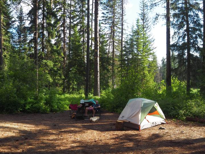 When we were planning our trip, I told Zach to pick our US stopping points. I wanted to stop somewhere in western Montana since we planned to enter British Columbia at Roosville. The trick was choosing a campground that was out of the way enough that a site would be available (without a reservation) on a Saturday night. Zach wanted to stop south of Kalispell and ended up choosing Monture Creek Campground in Lolo National Forest.