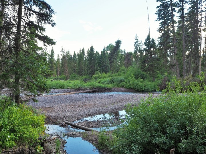 We arrived at the campground a little after 6pm and thankfully, there were two open sites. We chose the larger of the two – it may have been a group site – and set up. It rained briefly after we got the tent up, but it was only a quick downpour. The campground was small, only five sites, and well shaded by towering ponderosas. The trailhead at the end of the campground provided access to both the Bob Marshall and Scapegoat Wilderness areas. Our site sat alongside Monture Creek, and it was immensely pleasant to listen to its gurgle as we inhaled the fresh piney air. We ate the rest of our burritos and enjoyed being out of the car.