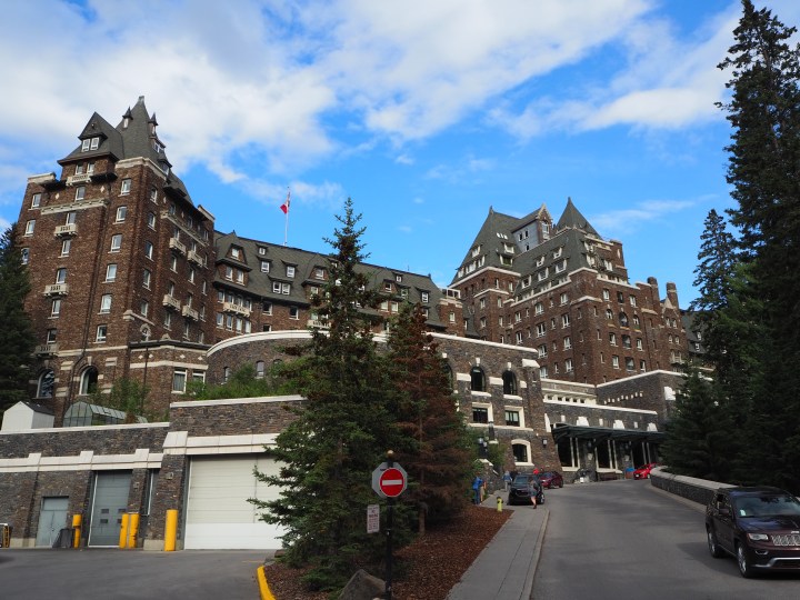 Revitalized, we decided to check out the Fairmont Banff Springs. Opened in 1888, as part of the Canadian Pacific Railway’s tourism campaign, it’s much more impressive than its counterpart at Lake Louise (in my opinion). The hotel has expanded a few times and now includes a conference center; the whole complex is massive. We walked around the main level, peeked in some of the shops and restaurants, and wandered the grounds. The hotel patio has a stellar view!