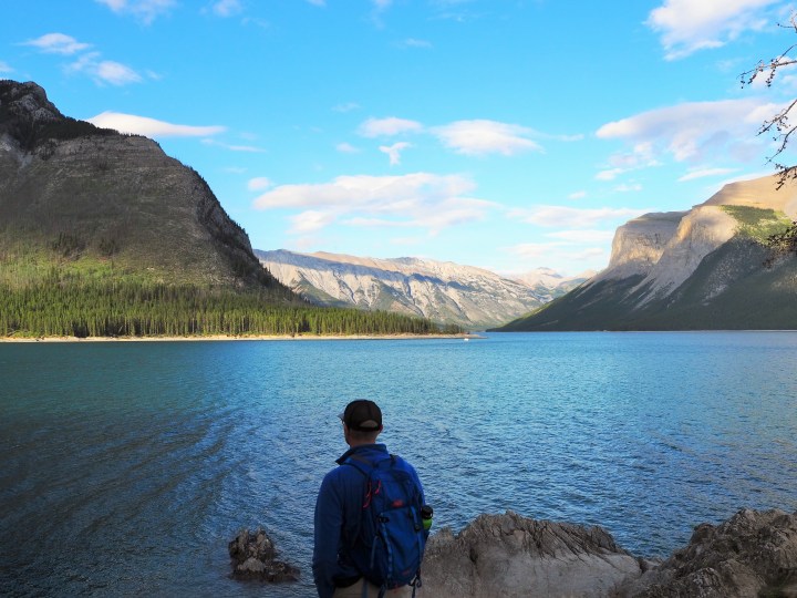 Zach had one last place he wanted to visit before we returned to Kootenay NP for the night: Lake Minnewanka. East of town, Lake Minnewanka draws its name from the Stoney Nakoda people who called it Minn-waki which means Lake of the Spirits. There are scenic boat tours, plenty of hiking options, and even scuba diving. (The most recent dam raised the lake level 98 feet submerging a resort village!) Here too, the views were incomparable. We walked along the shoreline for a bit and enjoyed the tranquility of the evening.