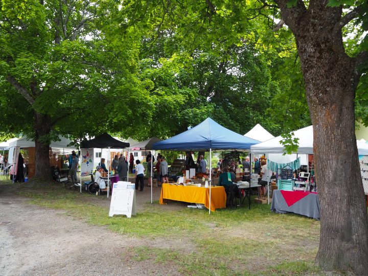 Only 6.5 km south of Rosebery, our next stop was a small lakeside village that sits on the shores of Slocan Lake. Originally called Eldorado, the town changed its name to New Denver when its residents believed it would eclipse Denver, Colorado. While that never panned out, the name stuck. When we pulled onto their main street after our hike, we spotted a farmers market in a corner lot and walked across to check it out. As we were leaving, we were pulled into conversation with an incredibly nice older woman who sold chocolate truffles. She handed each of us a delectable sample and chatted with us about her son who lived in Ankara, Turkey, but was interested in teaching in Boise; her collection of over 400 hats (!); and the party she was throwing this coming week in honor of her son’s visit. We exchanged information and parted with an invitation to visit the next time we were in town.