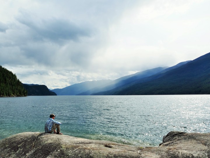 When we emerged from the forest, another band of rain was imminent. I thought we should take cover in the forest, but Zach quickly began preparing to paddle back across the lake. I begrudgingly followed suit, and we soon found ourselves paddling in a torrent of rain in the middle of Slocan Lake. Of course, as we neared the beach at Bannock Point the rain began to peter out. Drenched and irritated, we chose to carry the kayaks up to the car to dry and disassemble them. It was 7:45pm by the time we drove away, and as we discovered, well past closing time for everything in New Denver. The Slocan Lake Golf Club was our last resort, and they graciously agreed to feed us even though they were beginning to clean up for the night. We capped off a long adventurous day with a satisfying meal and a couple of beers. We couldn’t have asked for much more.