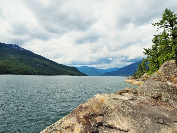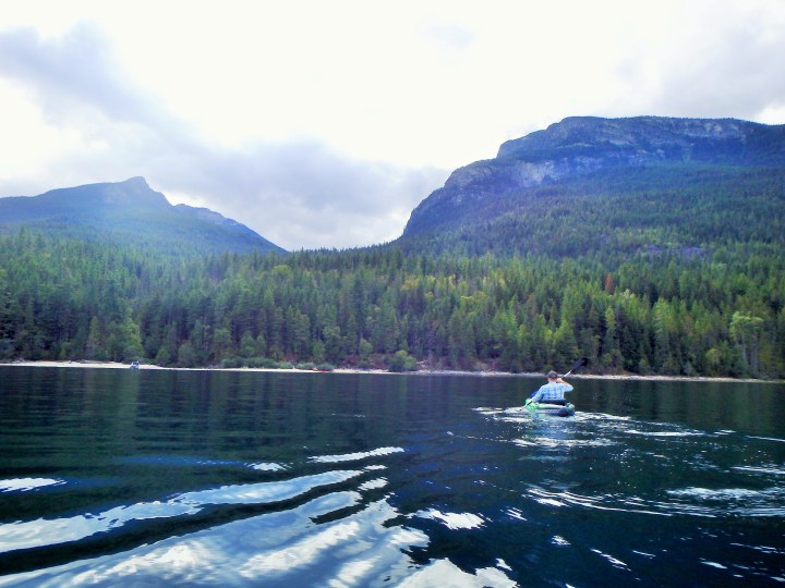 We hadn’t done any kayaking thus far on our trip and we were eager to get out on the water. Across Slocan Lake, opposite New Denver and two other small villages, sat Valhalla Provincial Park, a large 124,000 acre park covering a swath of the Selkirk Mountains. The park has several boat accessible lakefront beaches that allow for exploration into the park in addition to other access points farther south. I had settled on kayaking to a tiny beach at the outlet of Nemo Creek and hiking a short distance to a pair of waterfalls. The shortest, most direct way to cross Slocan Lake was to kayak from Bannock Point on the eastern shoreline.