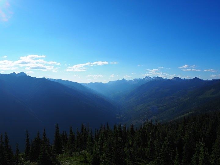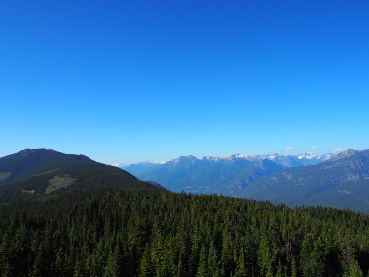 Located 7.5 miles up a rough, narrow, and steep access road, the Buchanan Lookout sits perched above Kaslo. Used as a fire lookout for the forest service from the 1940s to 1982, the Buchanan Lookout is now a day-use recreation site with a short hiking loop and a smattering of picnic tables. From a height of 6,272 feet, the 360 degree views from the peak are worth the slightly harrowing drive.