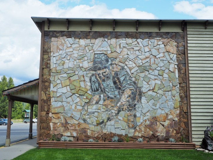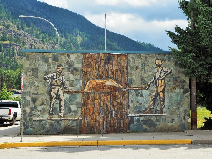 Salmo is home to some incredible stone mosaic murals. I’d noticed one as we drove in but wanted a closer look. On our walk through the village we found several, all paying homage to Salmo’s mining and logging past. They looked delicate despite the hardiness of the material.