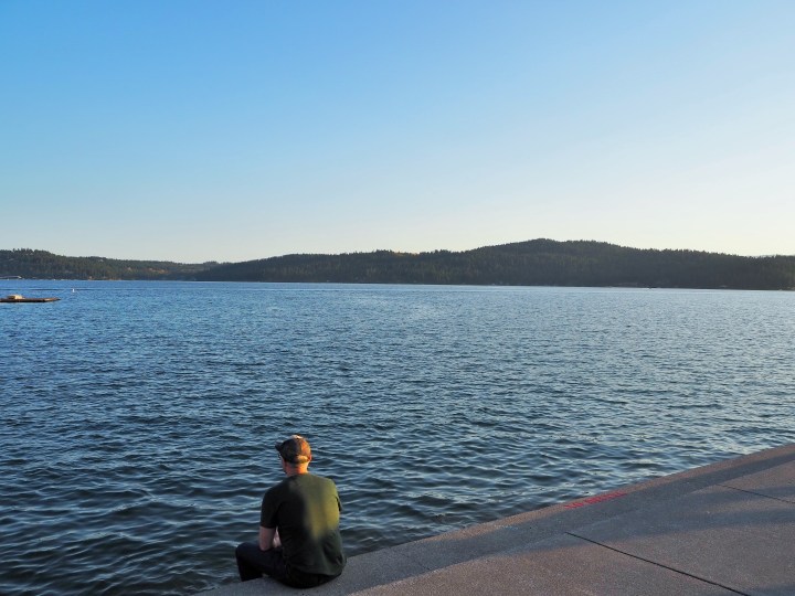 Only after we checked in, could we exhale. We left our bags in the room and ventured downtown to enjoy the evening. Coeur d’Alene sits on the northern end of Coeur d’Alene Lake, the source of the Spokane River and second largest lake in Idaho. The city has a nice developed waterfront with a couple of parks, a city beach, and a large resort. It was a pleasant evening to walk around thanks to a recent cool front.