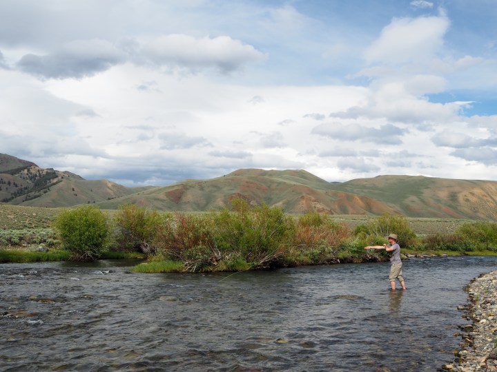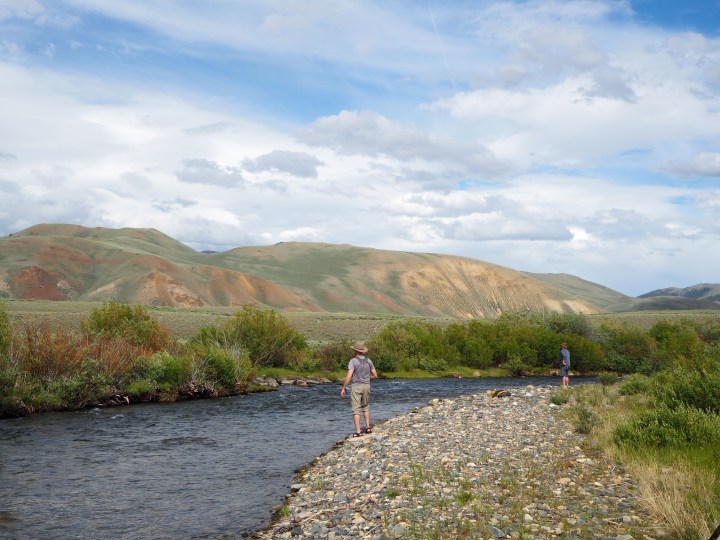 There was still quite a lot of daylight left once we returned to our camp. We had lunch, and then the guys attempted to fish in Star Hope Creek, a brief walk from our site. When that didn’t work out, they decided to return to our Rally Point and fish a quiet spot farther up on Star Hope Creek. I decided to tag along with Tru, so I could get some photos of the Basin and their fishing escapade, while Lisa stayed behind with their dogs. While it had appeared from Green Lake that it may rain, it never did. The clouds continued to roll in and out, but as the day wore on, it became even nicer. The sky cleared, and the sun remained. It was immeasurably peaceful while they fished. The persistent gurgle of the river, the way the light began to turn from harsh to warm, even their movements as they fished, flicking the line out and back, tricking the fish with the fly. I remained in a zen-like state, glancing up from my Chekhov stories to watch a cast or observe the light change on a nearby hill. It was really lovely. On our way back, I got my wish. I took several photos of the Basin set in a magical golden-hour.