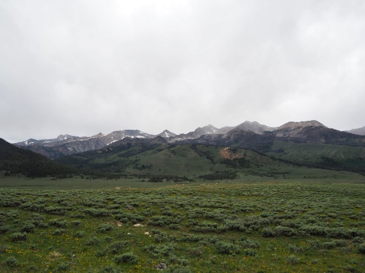 Zach and I had a gorgeous drive to Sun Valley where we took Trail Creek Rd. into the National Forest east of Ketchum. As we closed in on the Rally Point, dry lightning flashed ahead of us and dark clouds loomed ominously in the distance. We were a little early, but wary of being the tallest objects on the horizon, we remained in the car observing the sky. By the time Lisa and Ryan arrived, the storm – though slow moving – had passed by and no lightning had been seen for nearly 45 minutes. Even still, we decided to explore other campsites closer to the treeline, where we might find a little more cover should it be necessary. As we followed Ryan and Lisa into Copper Basin, we were continuously dumbstruck by its beauty. The basin is ringed by a series of peaks, rising and falling away into canyons and valleys of their own, providing a dense texture to the open sagebrush plain in the interior. It felt massive and wild, almost like we were in the heart of an undisturbed wilderness, few humans around to disrupt the natural order.