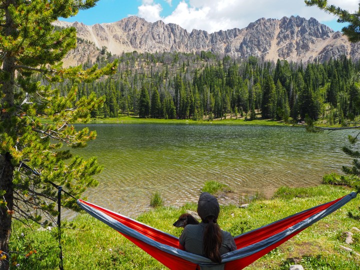 We walked around the lake in search of a place to set up for the afternoon and managed to find a quiet spot on the lake’s western edge. Hikers came and went, backpackers arrived to set up their camps, but it never felt crowded. There was ample space to spread out around the lake’s entire perimeter, and we’re always surprised by the brevity of many a day tripper’s lakeside stay. We enjoyed a languid afternoon, letting Truman amble around and cool off in the lake from time to time, taking turns laying in the hammock with its picture perfect view. We circled the lake on our way out, enjoying the shift in perspective. We were some of the last day hikers down, and we passed a couple more groups of backpackers on their way up for the evening. It was a great introduction to the White Clouds and only increased my desire to see more of the range.