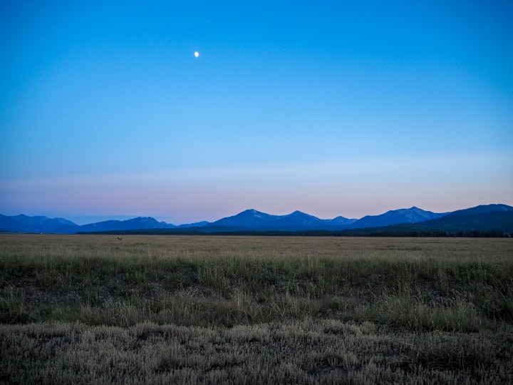 After dinner, we wanted to sit on a beach with a beer. We drove over to the Pettit Lake day-use beach, surprised to find it deserted, and set up our chairs to watch the sunlight disappear. It was peaceful for the most part, punctuated by barks from across the lake and from our own dog at the sight of a chipmunk. It was alluring to watch the light transform into a muted darkness. Back in the valley, the sky was full of soft hues, families of antelope, and sandhill cranes. Entranced, it was a moment I wished lasted longer.
