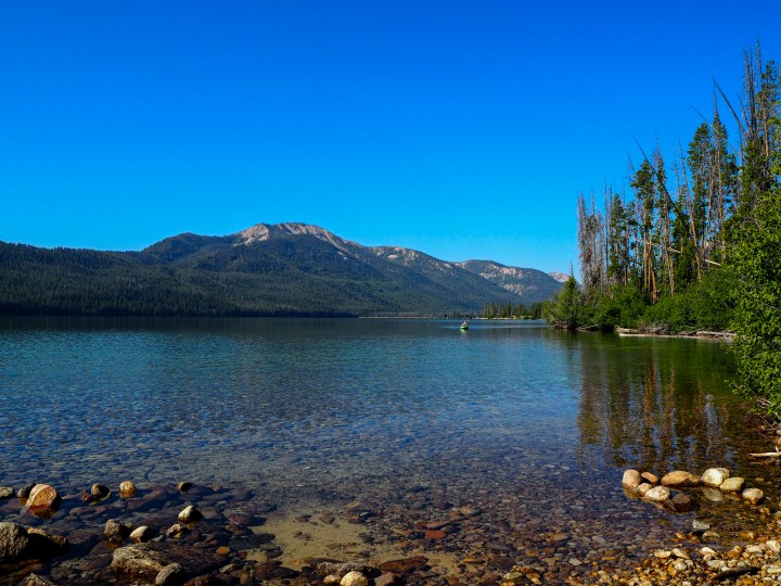 The next day, we planned to pack up and leave for Swan Valley. I was tempted to call it off and stay in the Sawtooths, in this perfect bubble, but I knew it would be our only chance this summer to get out of the close-to-Boise radius. So, we rose earlier, packed up, and drove up to Alturas Lake for a morning paddle before departing. It took us a couple of attempts to find a good avenue to the water, but ultimately we found a pullover large enough for one car and a path leading to a small beach on the shores of the lake. Zach set off first while I stayed with Tru, and then vice versa, each of us taking a turn enjoying the calm of the morning waters and the soft light. It was a great start to what would be a longer car day traversing a less than exciting route to our next base.