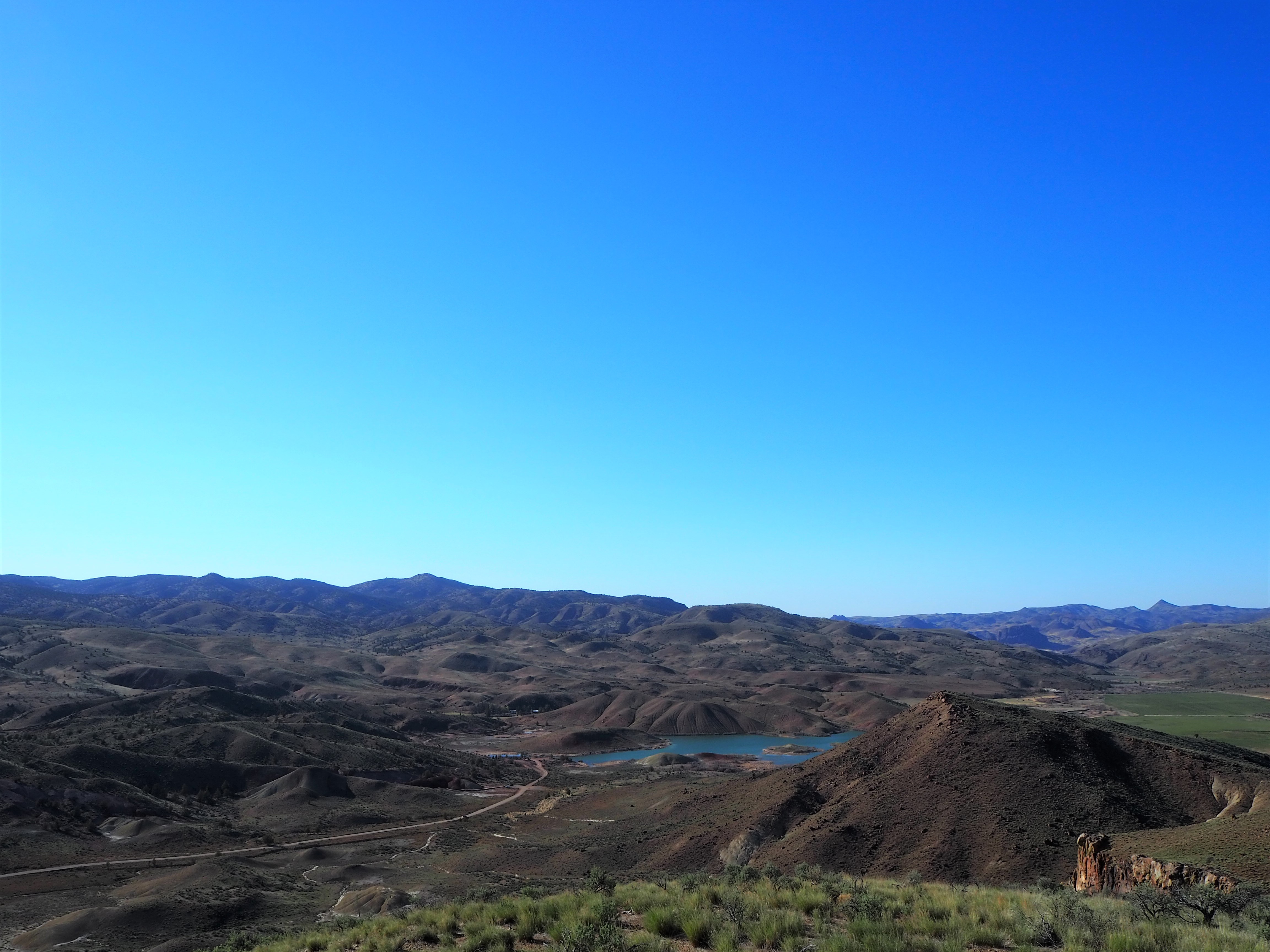 Back in the shade, Truman decided he wanted to do the short trail to the riverside, so we willingly obliged and ambled down the wide path to the river’s edge. The entire time we were there only one other elderly couple was out, making our time there serene and peaceful. Then it was back in the car, driving past modern day farms and ranches, before a brief lunch stop at a pull out overlooking the Strawberry mountains, then back along the highway as forests melted into dry, sagebrush plains, then bright green irrigated fields, and finally home.