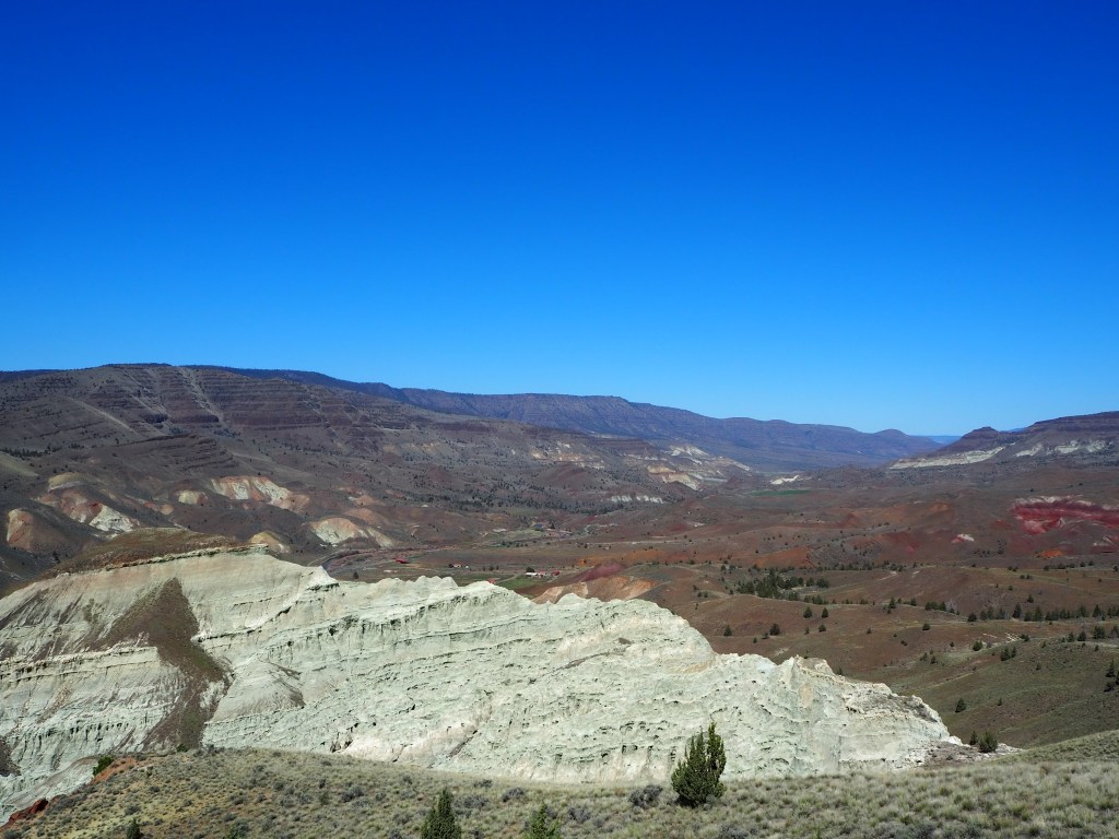 The following morning, we prepared breakfast and drove an hour east to the Sheep Rock Unit. It’s the largest unit and the headquarters of the Monument. We lucked out as the Thomas Condon Paleontology Center had reopened to the public the day before. Both a visitor center and a place for scientific study, the Center has over 500 fossils on display and murals on the wall show how the regional environment has changed over time, including accurate depictions of extinct flora and fauna. The space was nicely laid out and although you could get a little bogged down by some of the information (if you, like me, are less scientifically inclined), it was fascinating to see so many fossils from the region. The Center even has a large viewing window that allows visitors a peek into a paleontology lab; it’s too bad it was empty during our visit.