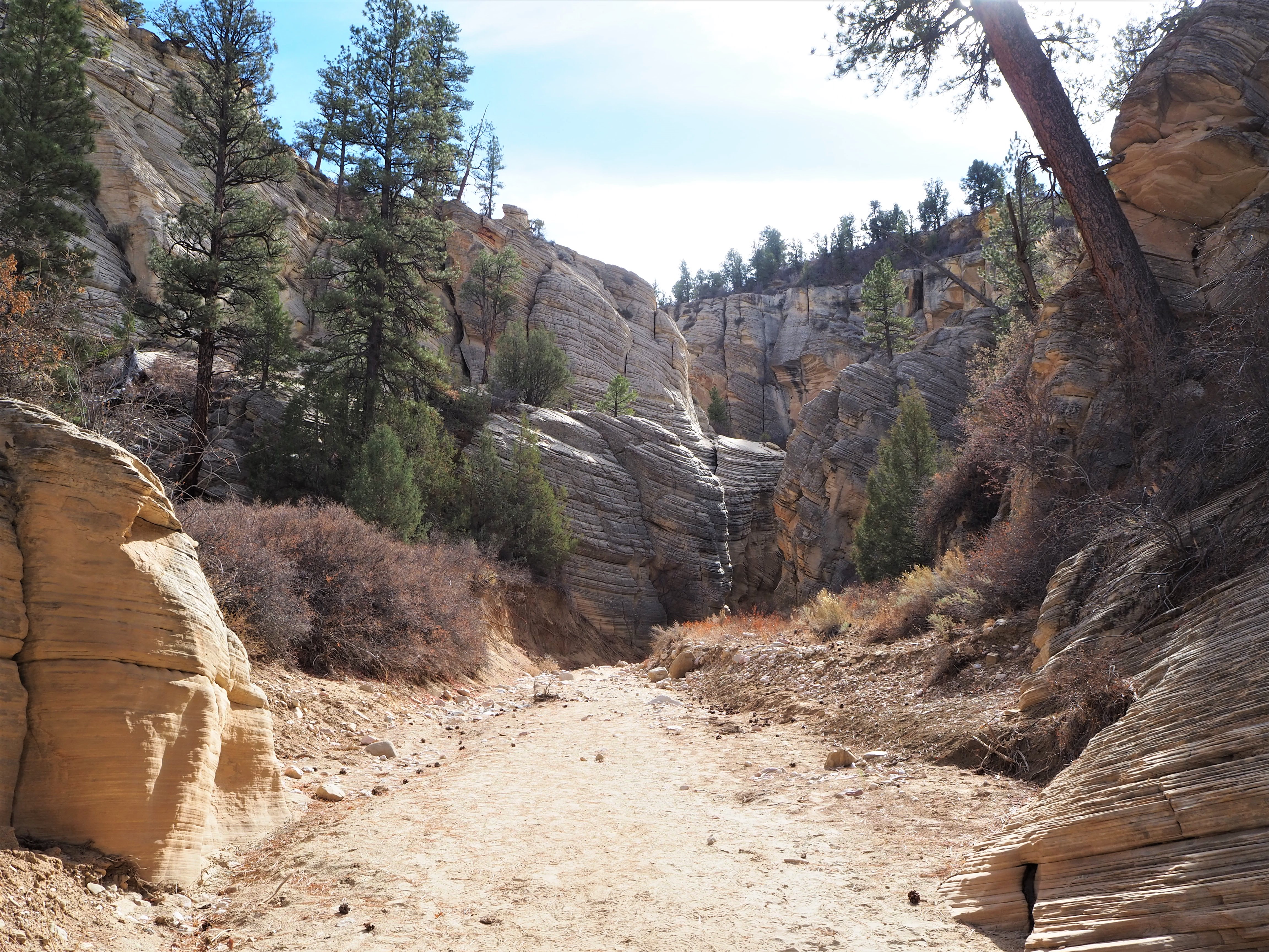 For our final day (also Thanksgiving Day) in Kanab, I wanted to do a local hike. Every time we spend Thanksgiving in Kanab, we make an enchilada casserole as our Thanksgiving meal. With that in mind, we wanted a nice, strenuous hike that would account for the calorie-rich casserole I would make later in the day. I chose Mansard Trail, a 4.5 mile hike with slightly less than 1,000 feet of elevation gain located east of town.