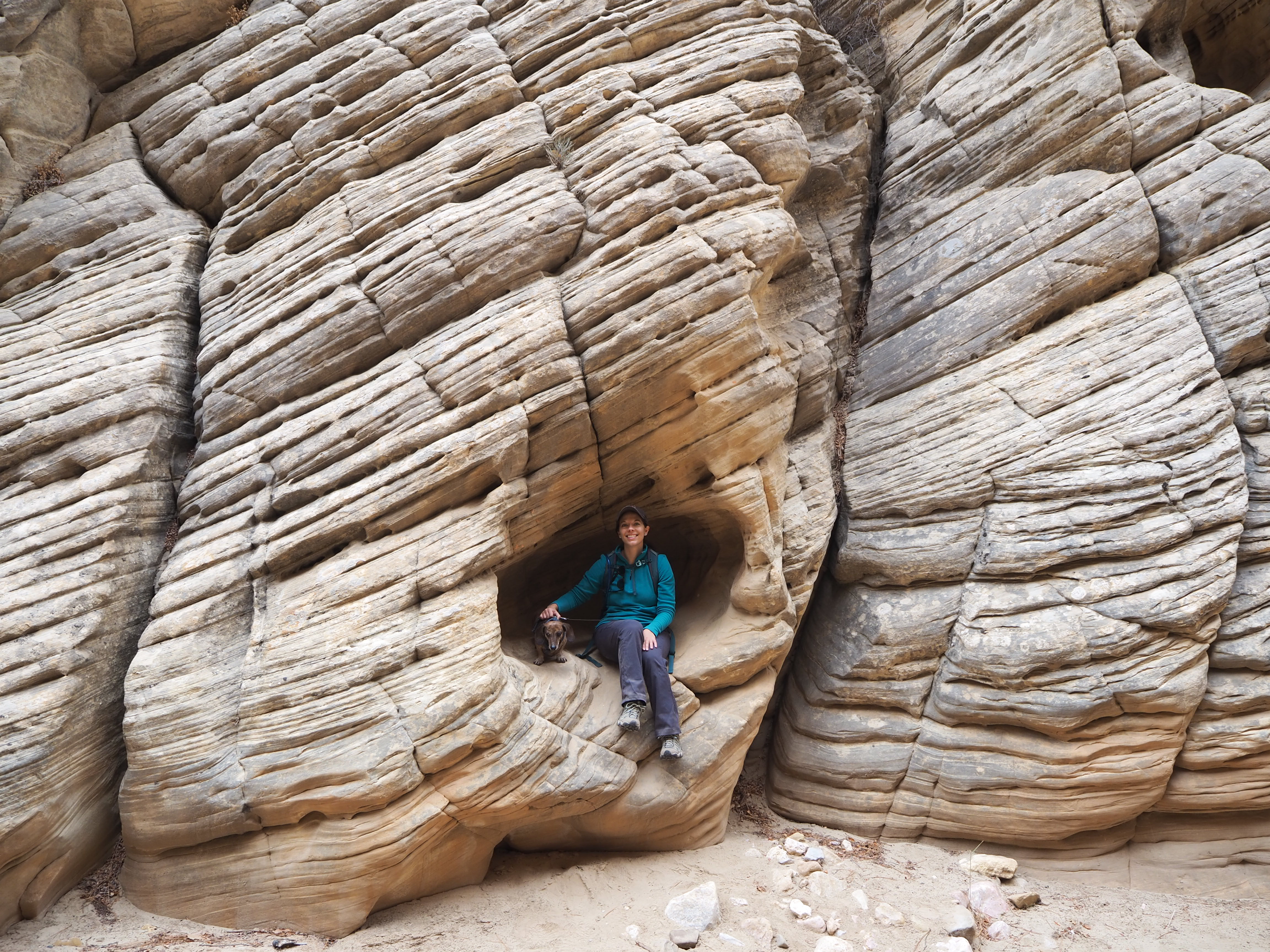 Once we left the embrace of the canyon walls, we were flushed into a wider canyon with swirling, colorful sandstone formations rising on the walls on our right. We stopped to have our lunch in the shade, enjoying the open views across from us. 5.5 miles ended up being the right (round-trip) length for us, as Truman began to slow once we reached the exposed reaches of the wider canyon. There were more hikers than I expected, but there was still more than enough space for social distancing. In all, we passed maybe 5 people.