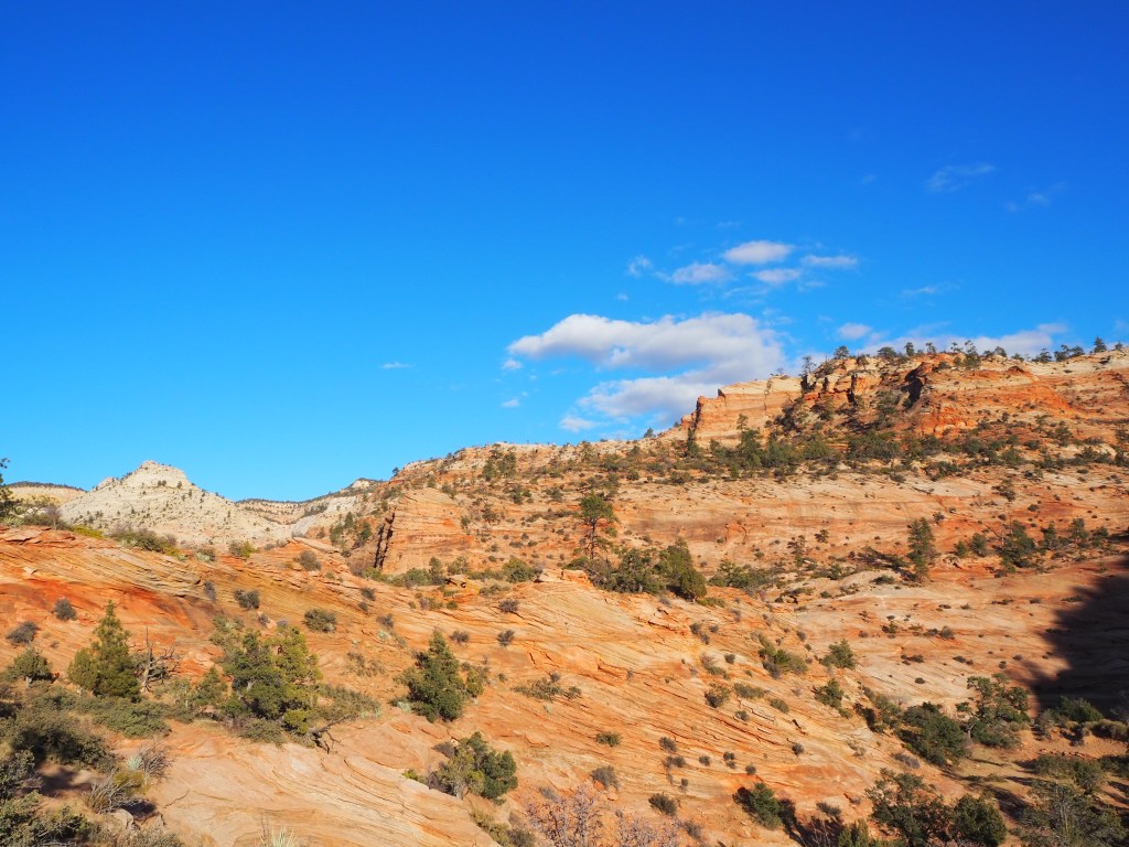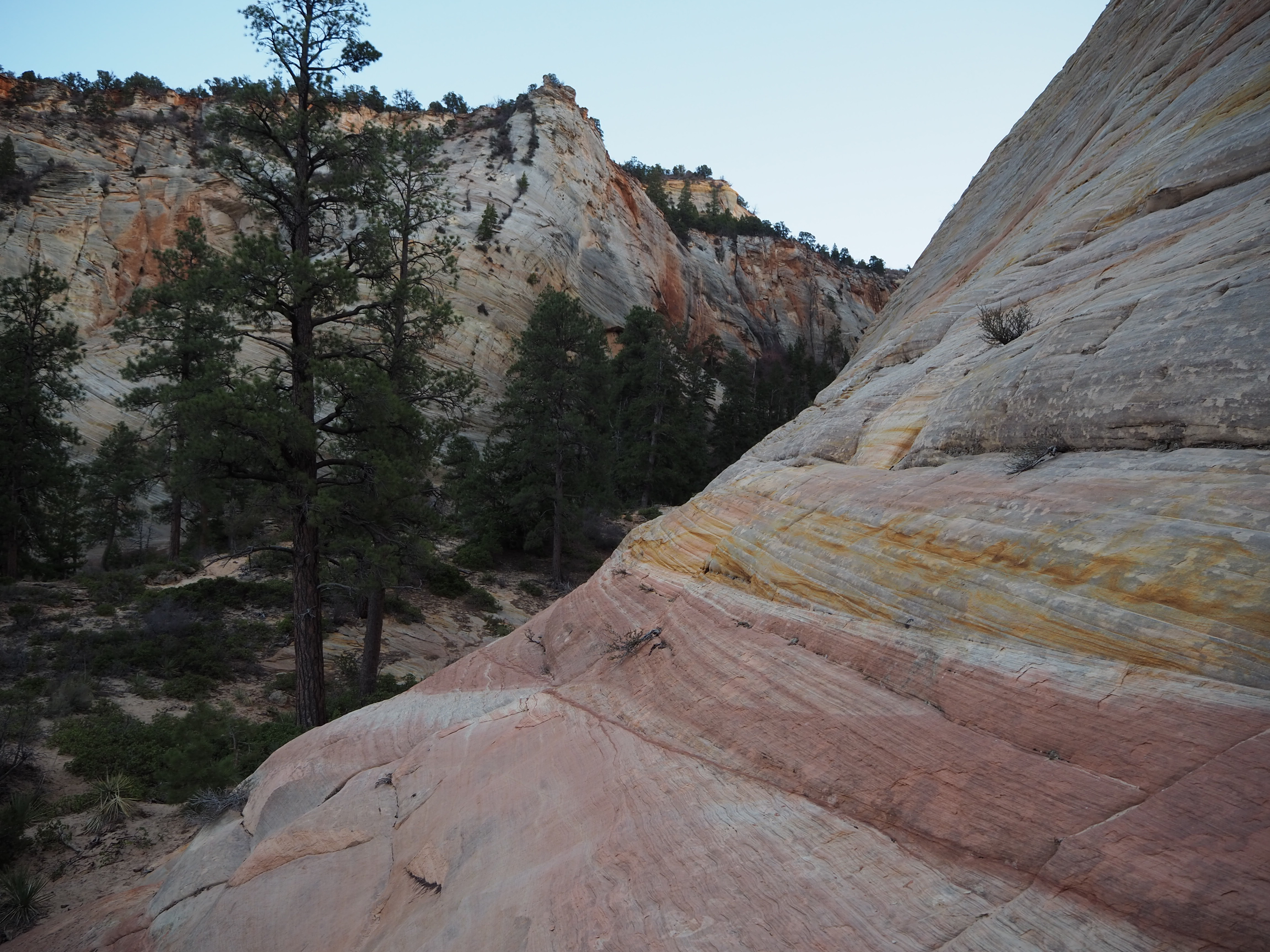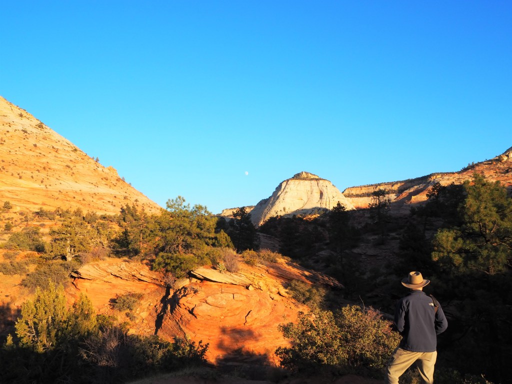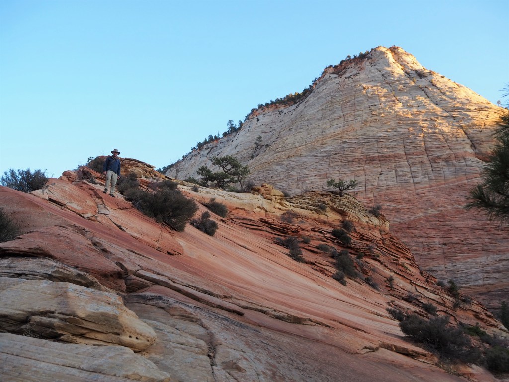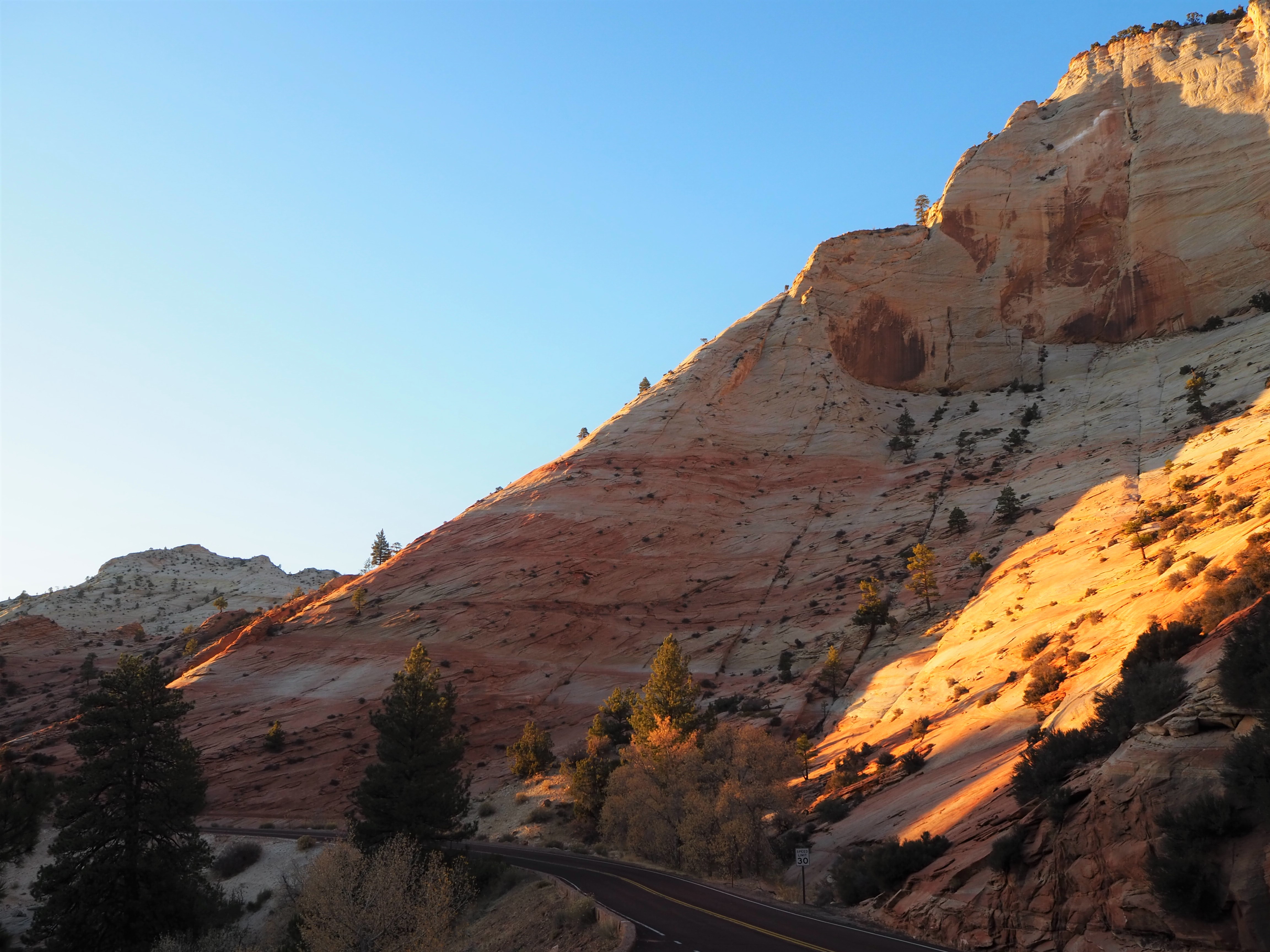 Because we started early, we were back at our casita with more daylight to burn. I was itching to do one more thing to ensure we got our fill of southern Utah before returning to Idaho. Zach suggested making the drive to Zion’s east entrance. Typically less crowded than the main canyon, we thought we might catch it at a quiet time, just before sunset, when day trippers were headed back for the evening. We weren’t entirely wrong, but it certainly wasn’t quiet. I thought we might do a short hike, but upon entering the park that notion was quickly dispelled. Instead we pulled off where we could to climb around the sandstone playground of Zion’s East Canyon. (Before and after a mistaken trip through the tunnel – whoops!) It ended up being the perfect close to the day. The longer we were there, clamoring around, the more people left, until it really was quiet. We even had Checkerboard Mesa all to ourselves! We left after dusk, and arrived at our casita fulfilled and ready to return home the next day.