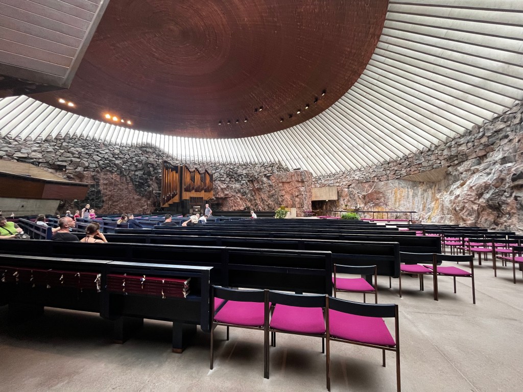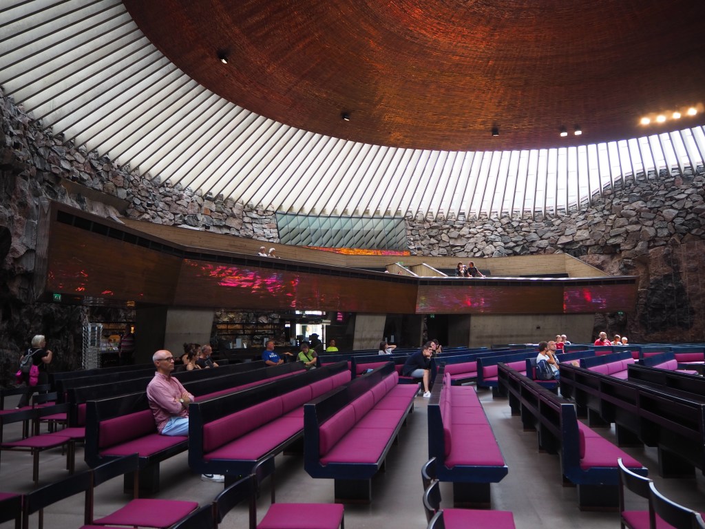 After we parted ways, Zach and I ventured over to Temppeliaukio Church (also called Church of the Rock). Conceived as part of an architecture competition, Temppeliaukio Church was designed by brothers Timo and Tuomo Suomalainen and completed in 1969. Still an active Lutheran church, Temppeliaukio was built into the bedrock and looks less than stunning from the street level. Yet, once inside the hushed stillness of the church, it’s absolutely spectacular. The sanctuary rests in the excavated bowl of rock, while overhead a dome of copper rope caps the space, and natural light floods in through the skylights that separate the copper and rock. The space emits an absolute sense of peace and tranquility and completely moves you to be quiet and still. It’s definitely a special space, even for the non-religious.