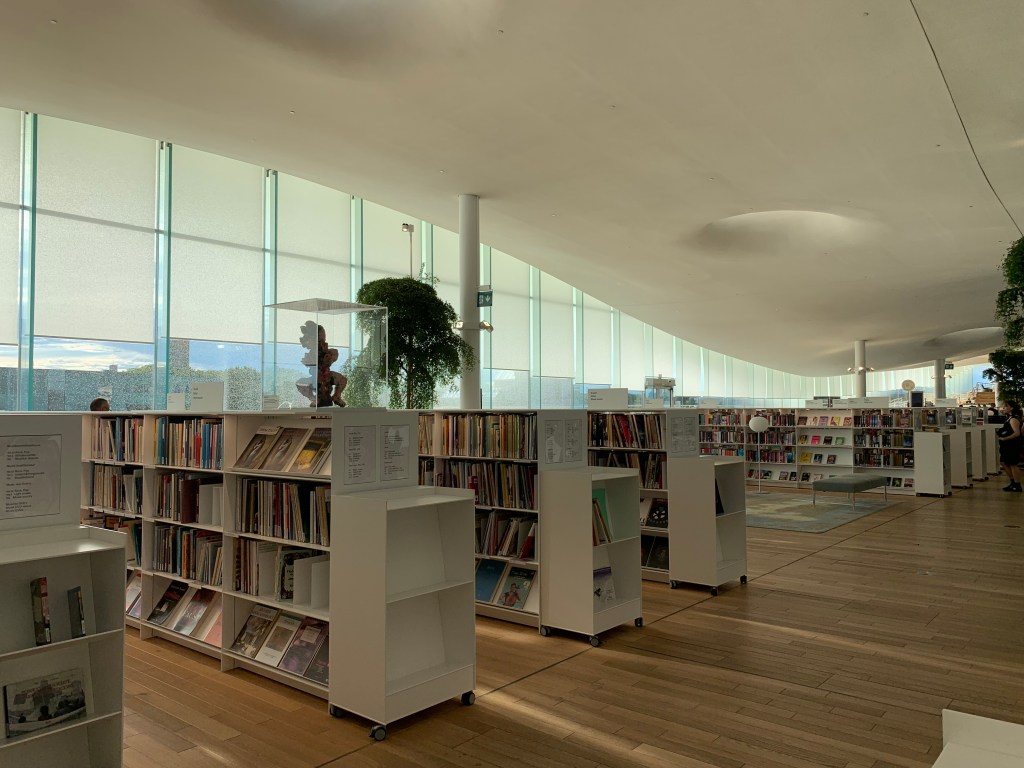 We thought it was meant to rain for most of our stay in Helsinki, so the fine weather prompted us to pack a lot into the evening. We set out for Oodi, Helsinki’s Central Library. The backdrop to Kansalaistori Square, Oodi is a prime example of how libraries can continue to be spaces for community engagement and activity. While books are housed on the third floor, in a gorgeous naturally-lit space, the other two floors have a range of spaces for public use – studios, several sizes of meeting spaces, screening or event halls, a reading room, workspaces, and on and on. There were instruments you could check out, 3D printers, sewing machines – I was impressed. Oodi is a vision.