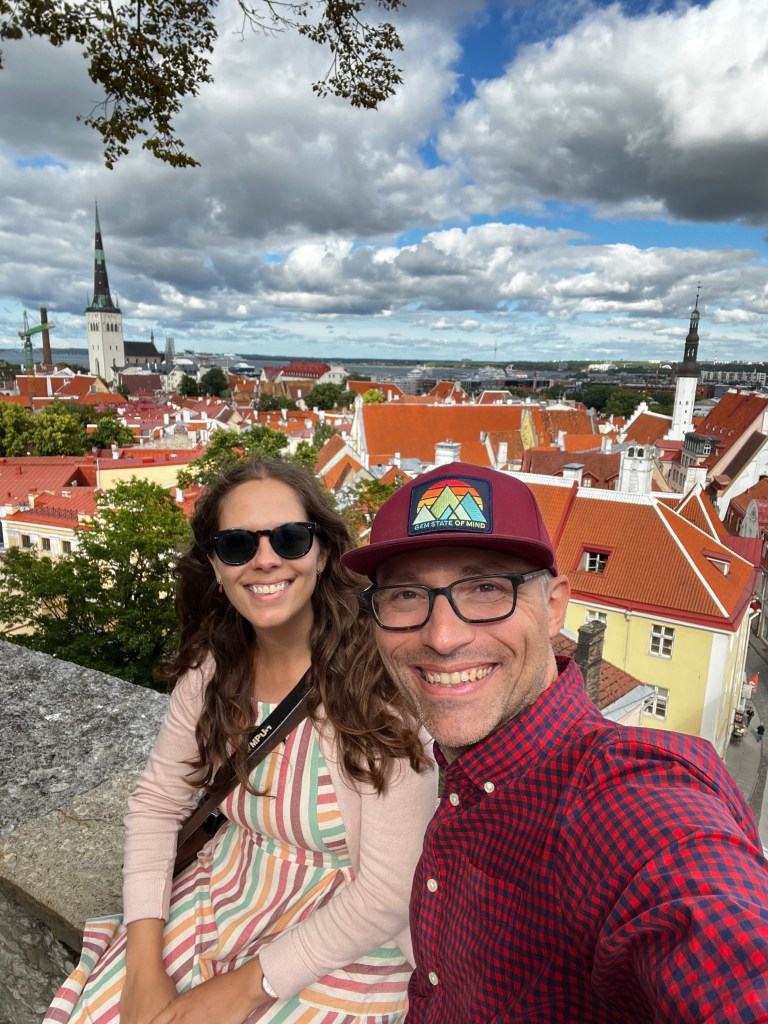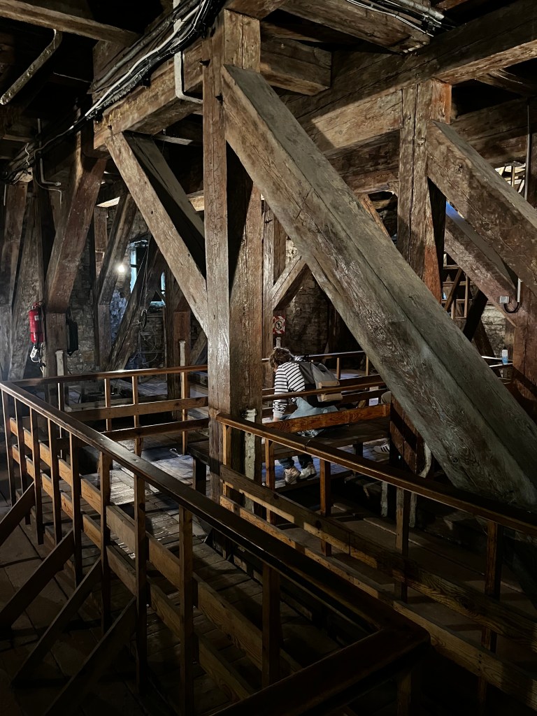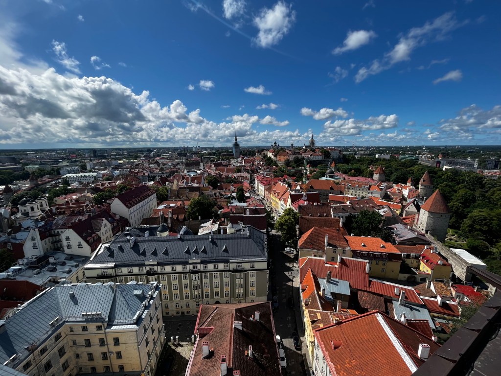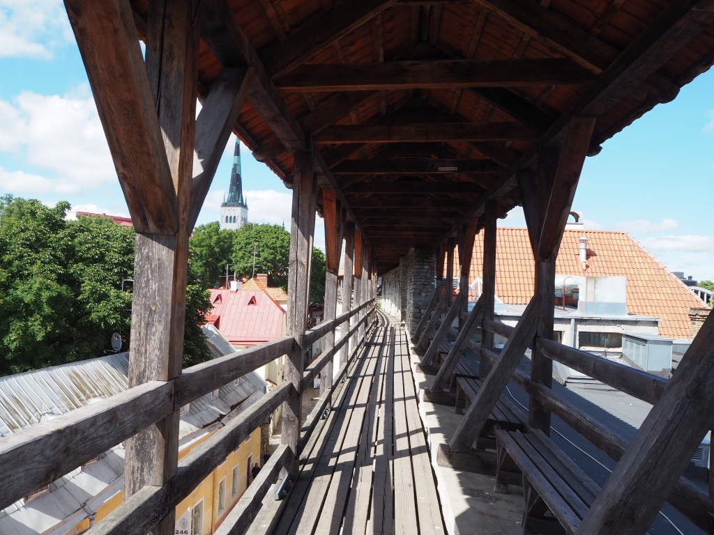 Zach was insistent that I could not climb to the top of Hellemann Tower, but when we entered the tower and saw a metal spiral staircase, his worries eased. I didn’t have any trouble slowly climbing the staircase, although at the top we had to squeeze through a small passageway and up a set of uneven stone steps. Connecting the Hellemann Tower with Munkadetagune Tower is a 200-meter-long old defense wall, accessible to visitors via a wooden platform. We walked a portion of the platform and then I let Zach go ahead to climb the second tower and capture views from above. The viewing platform alone offered a unique perspective of the Old Town.