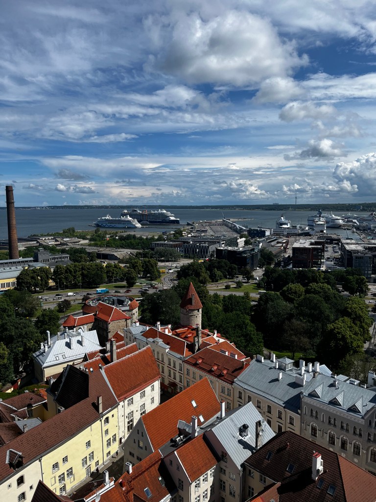 To cap off our walking tour, we stopped at the two viewing platforms on Toompea: Paktuli and Kohtuotsa. We strolled through the quiet streets, passing embassy buildings armed with gates and cameras to the first platform, Paktuli, and then a short way down, Kohtuotsa. Both offered up sweeping vistas of the red-tiled roofs of Old Town, the Baltic Sea, towers and steeples, and even a dash of modernity. We descended from Toompea via a steep series of steps from the Paktuli platform, arriving in Shnelli Park, and then caught the tram back to our flat to rest before dinner.